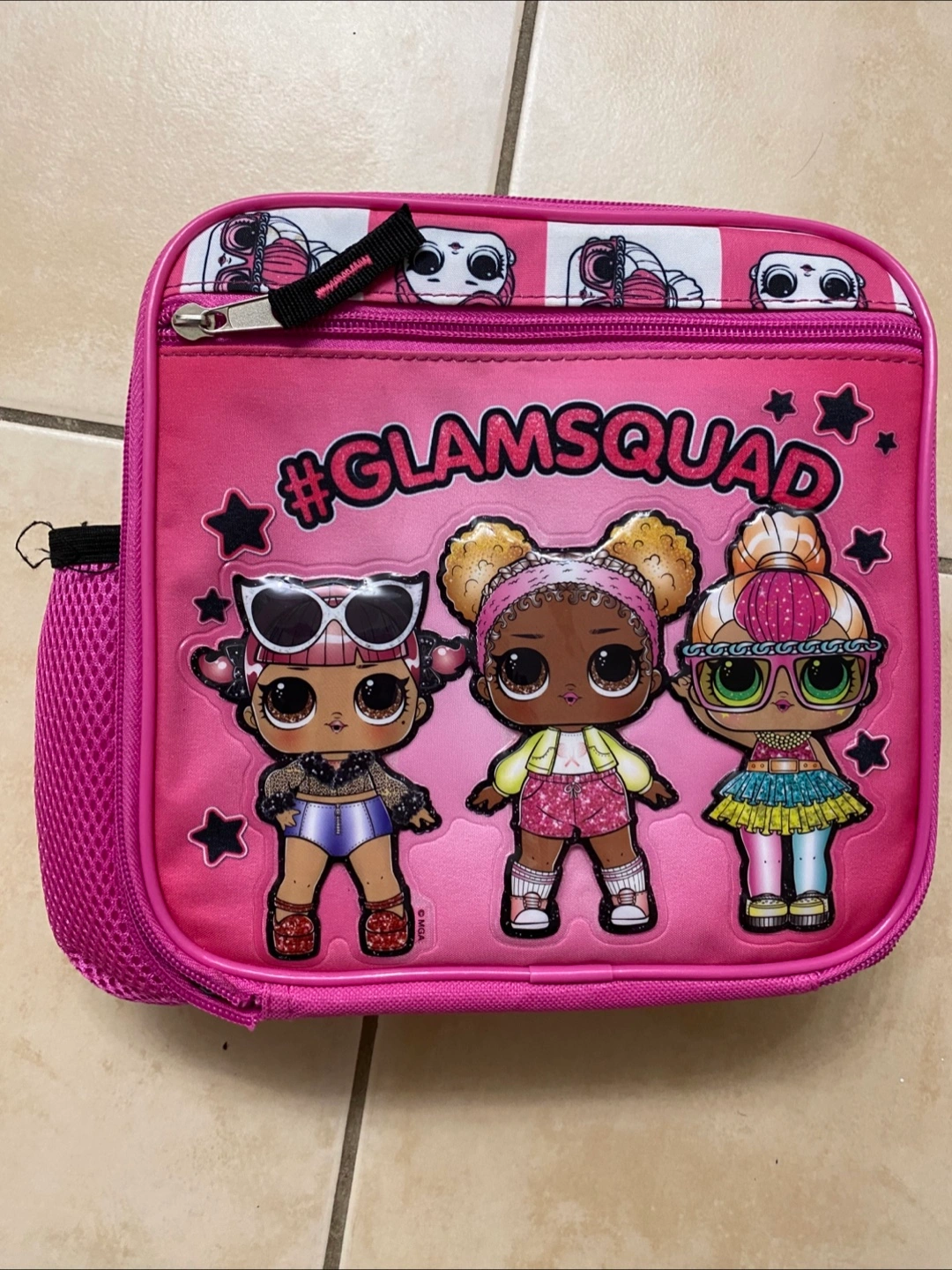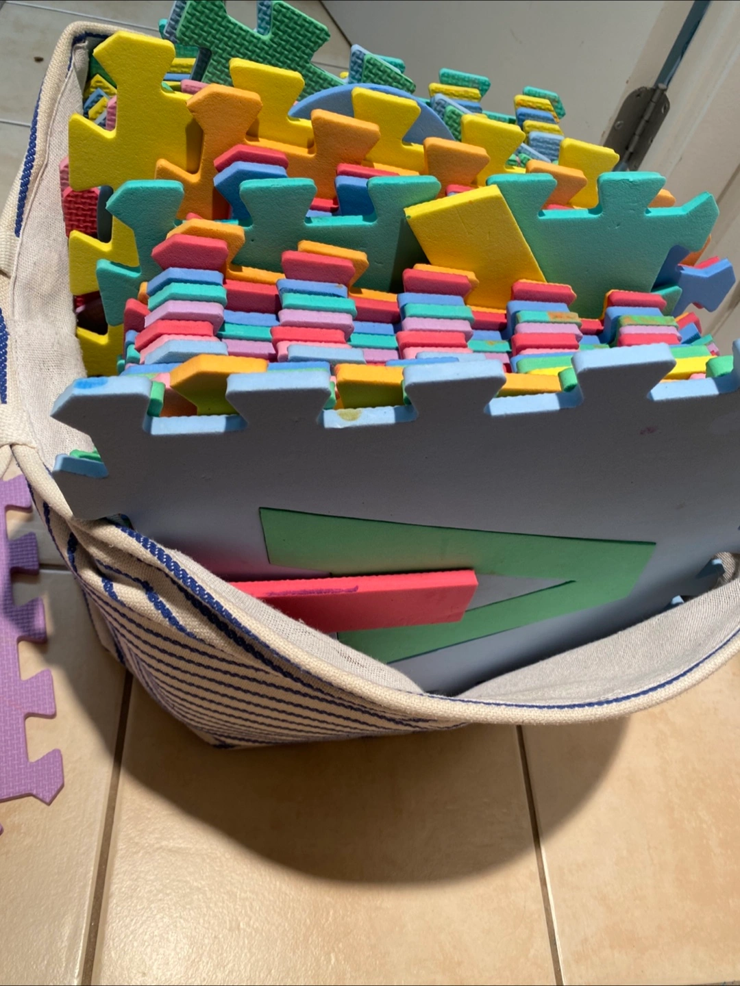 A pink lunch bag featuring three L.O.L. Surprise! dolls. Broken zipper. Stripe storage basket Alphabet and number puzzle mat, about half the pieces have paint stains. Free for pick up at Bathurst and fort York blvd. Preference goes to whoever can pick up all 3 items together.