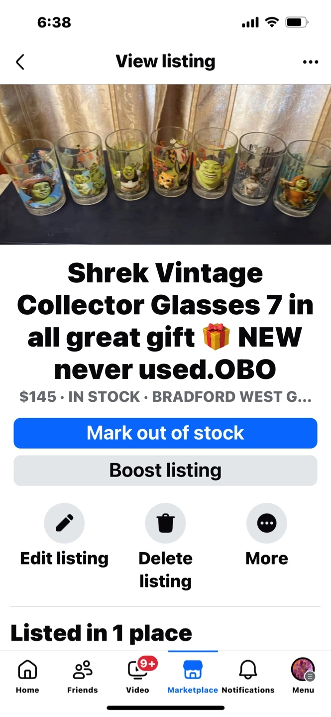 Vintage collection Shrek glasses with characters.