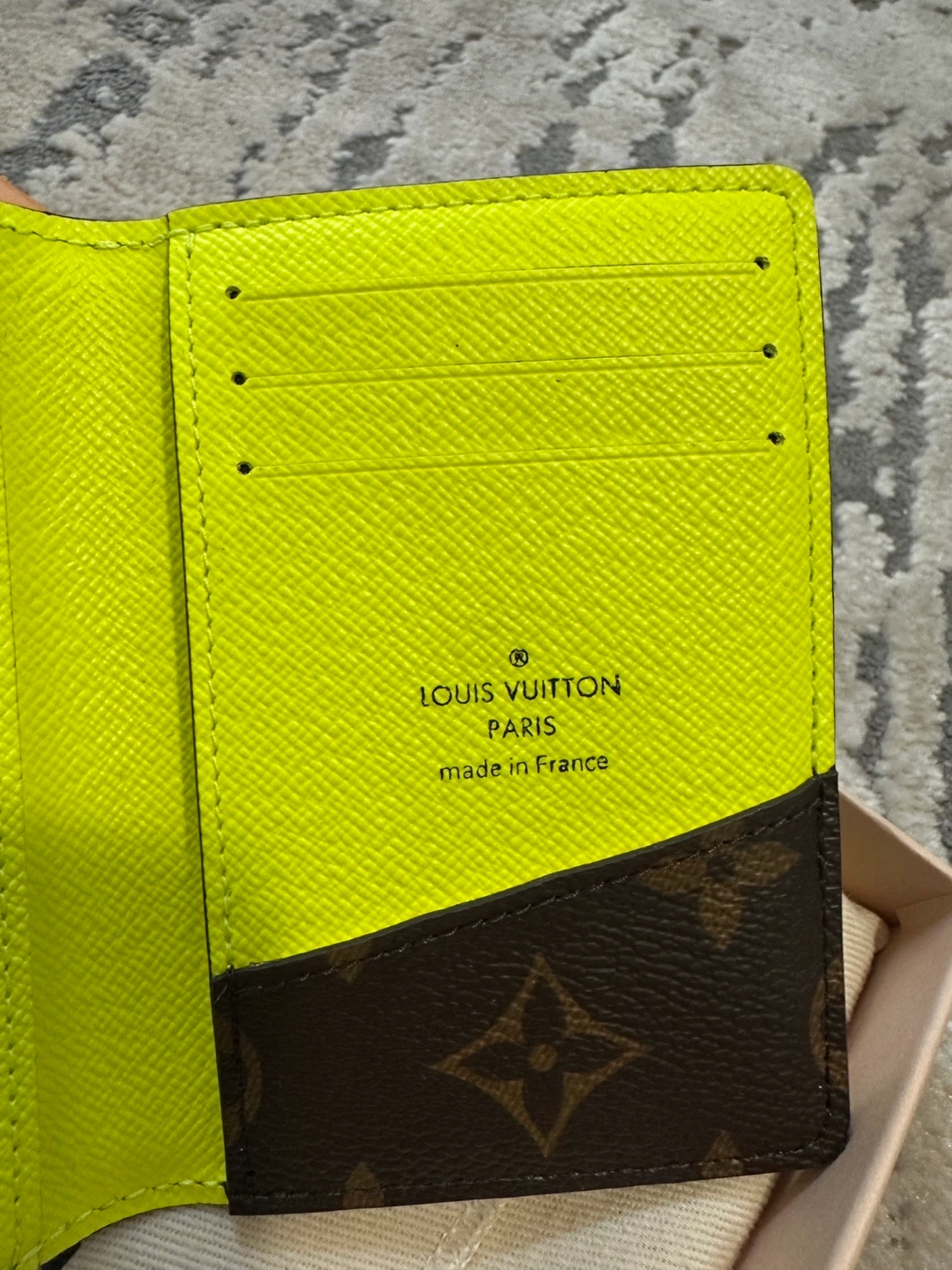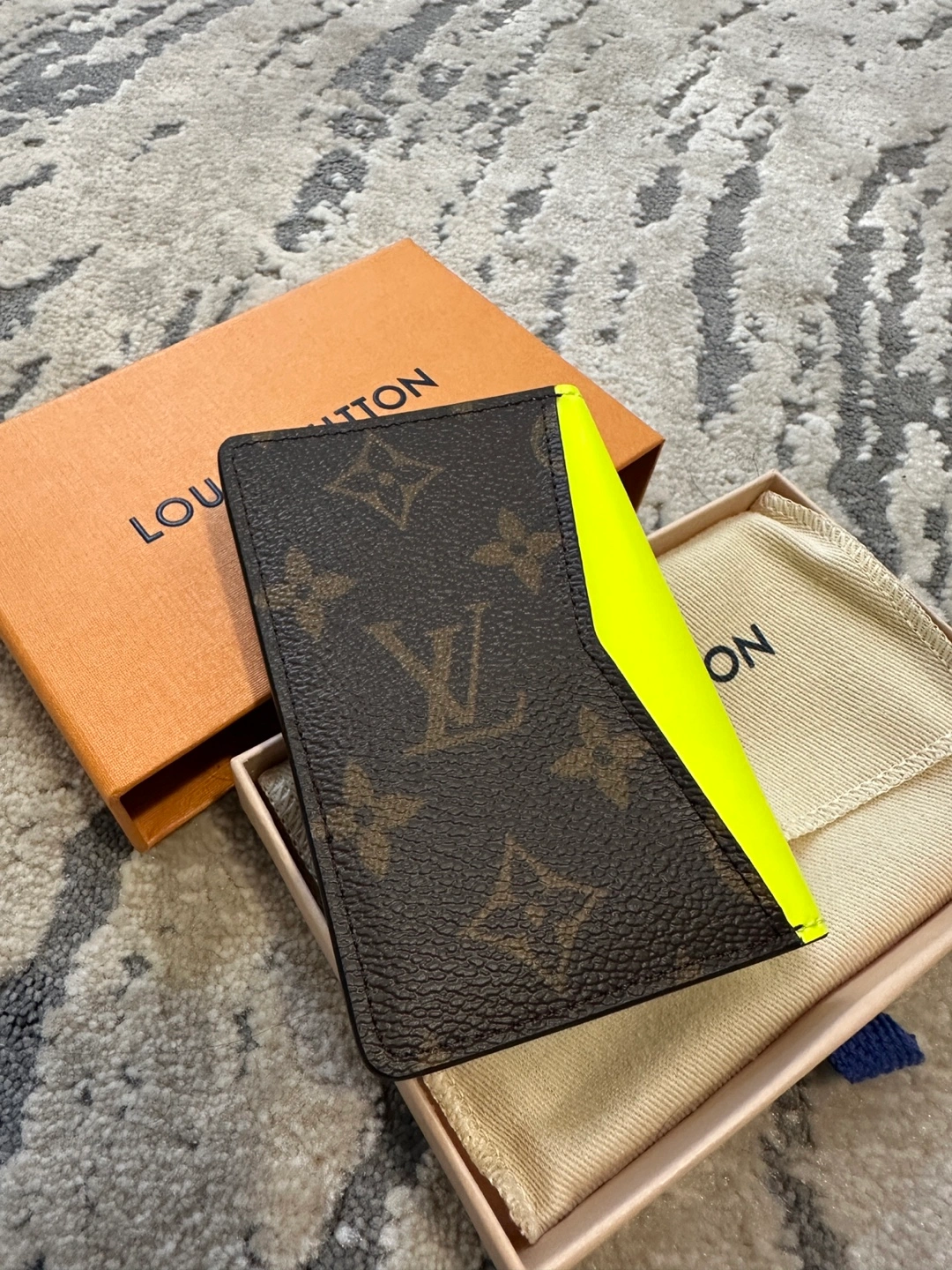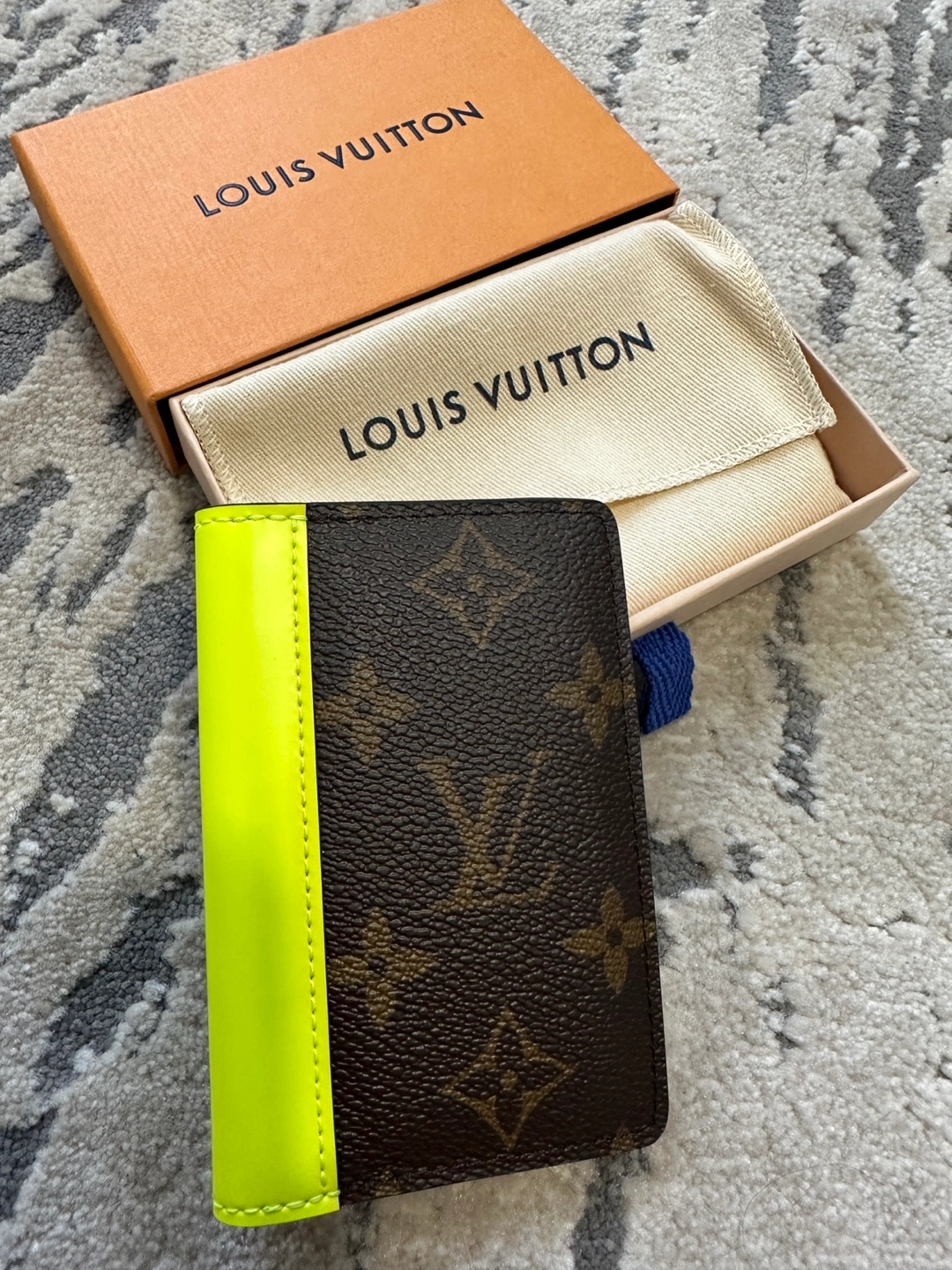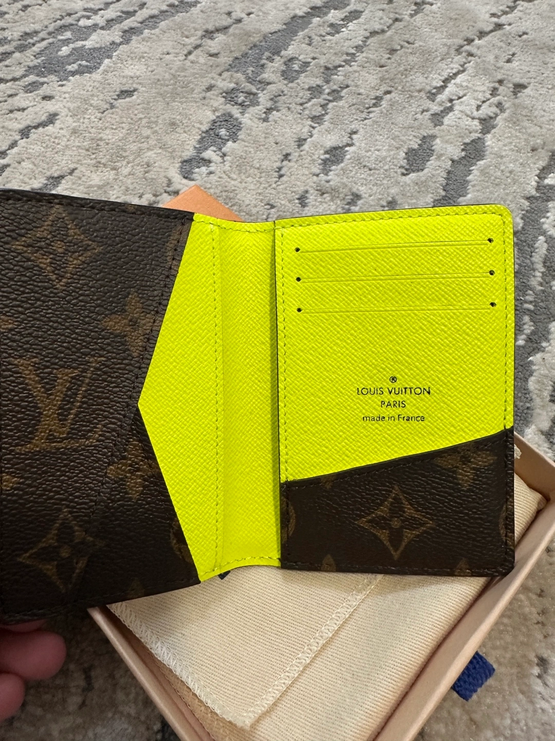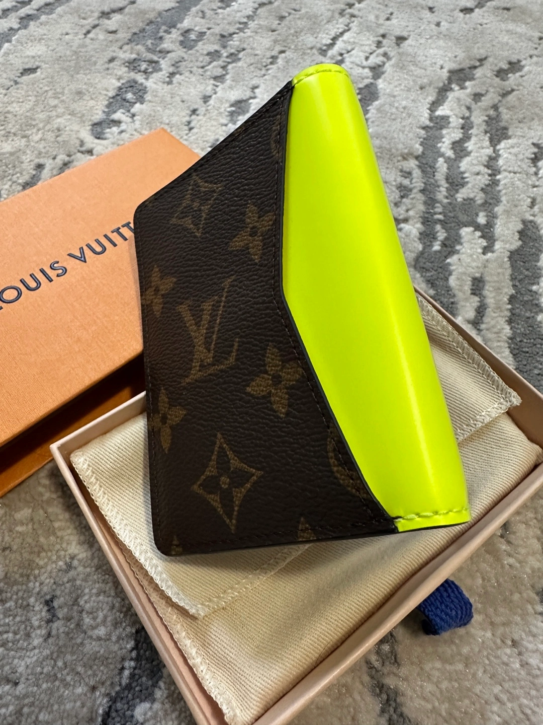 LOUIS VUITTON M80779 Monogram Organizer Dupoch Card Holder Card Case 7.5 x 11.1 x 1 cm (Length x height x width ) Florescent Yellow Monogram Macassar coated canvas and cowhide-leather Cowhide-leather lining Cowhide-leather trim 3 card slots 5 inside pockets Outside pocket Reference: M80779 NO LOW BALL NO PAYPAL