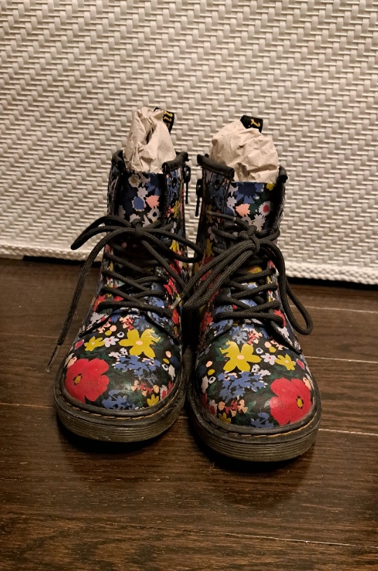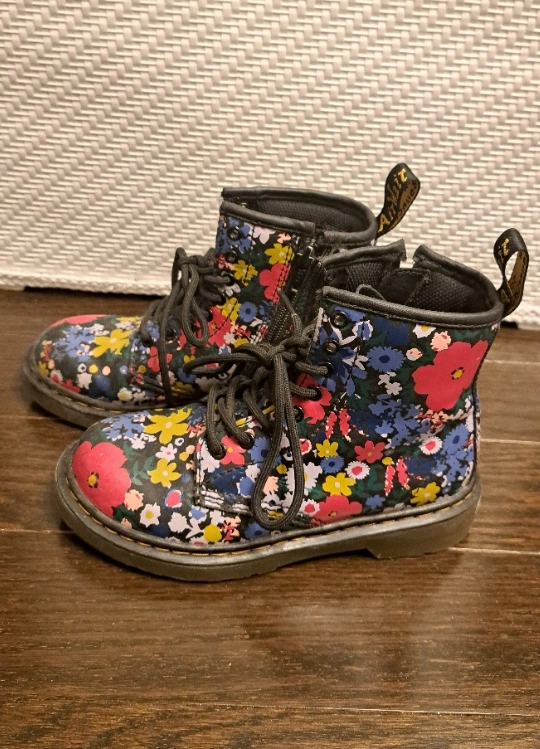 Stylish pair of floral print boots by #Dr. Martens. Feature with black laces, zipper on the side, and a pull tab at the back. Size: Youth US13 | UK12 | EU31 Colour: Black with floral print Doc Martens | Dr Martens | Doctor Martens Where to meet: (1) Near #MarkhamCathedral, or (2) Near #SherborneBloorEast #YongeBloor (limited pick up dates and time), or (3) #YongeFinch Go Bus terminal (limited pick up dates and time) Item(s) need to find a new home. Don't forget to #CheckOut my other listings!
