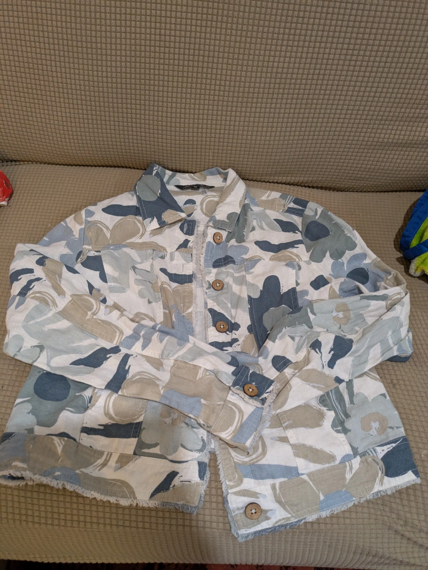 Button-up shirt, floral print. A great addition to any wardrobe. Features long sleeves and wooden buttons.