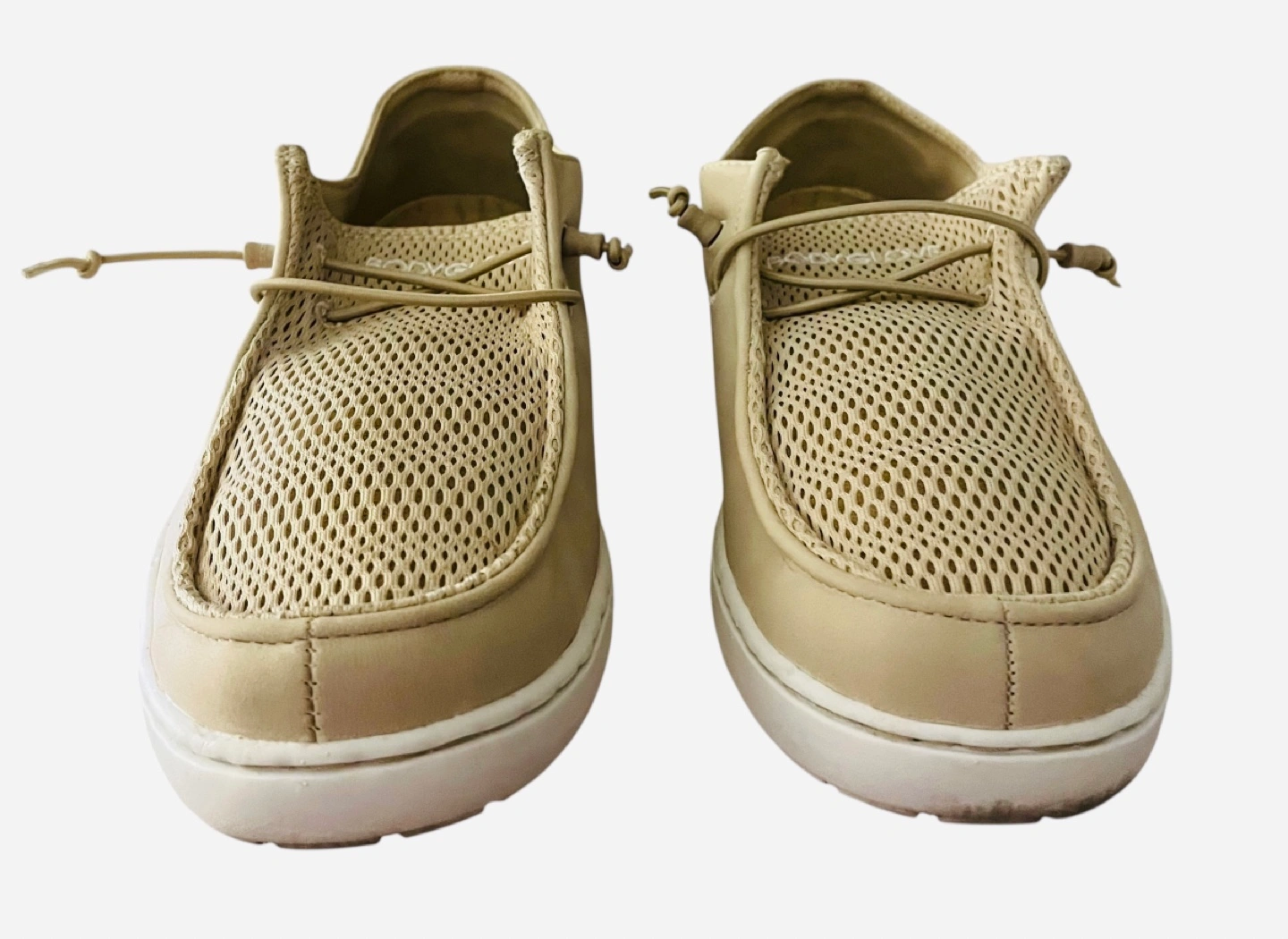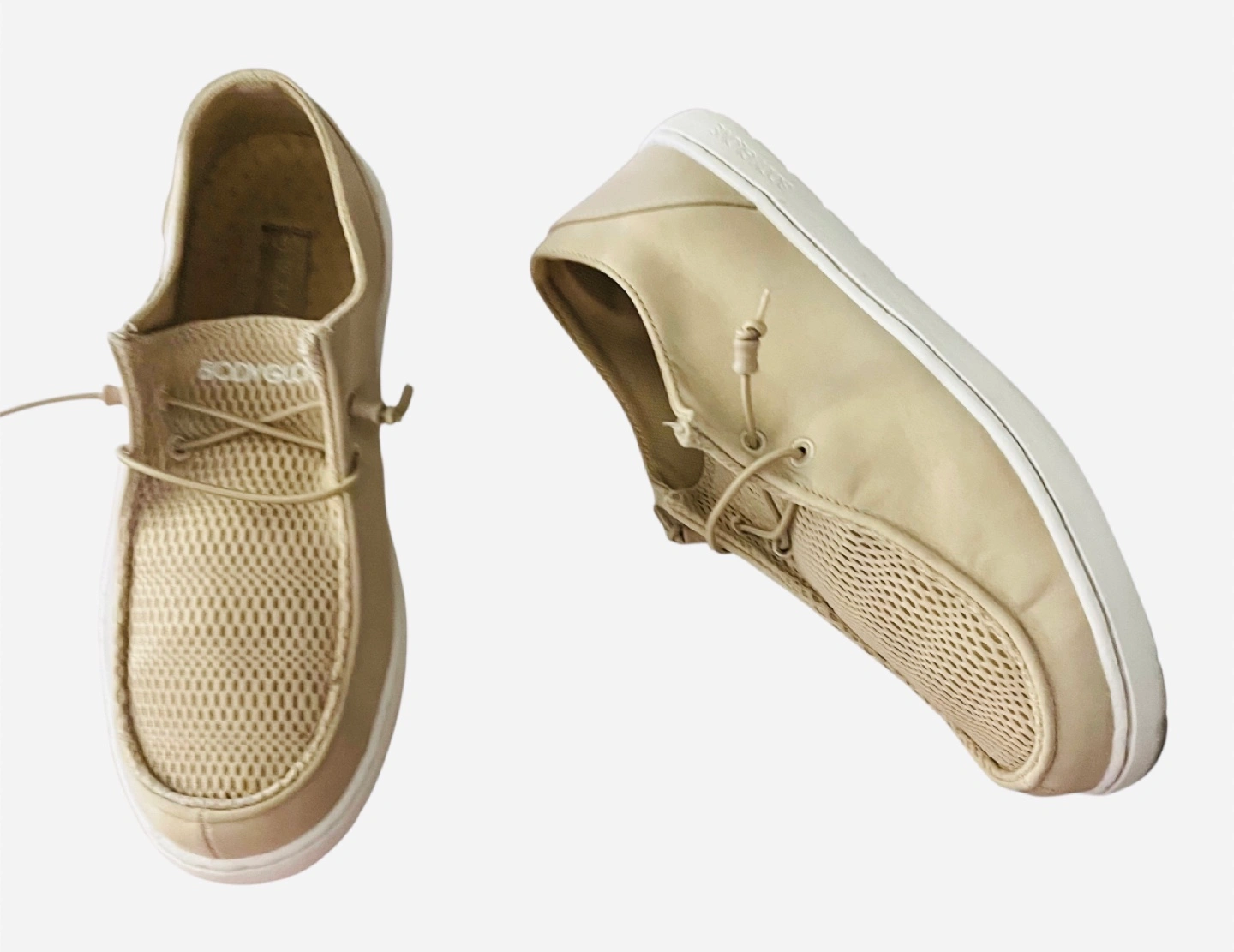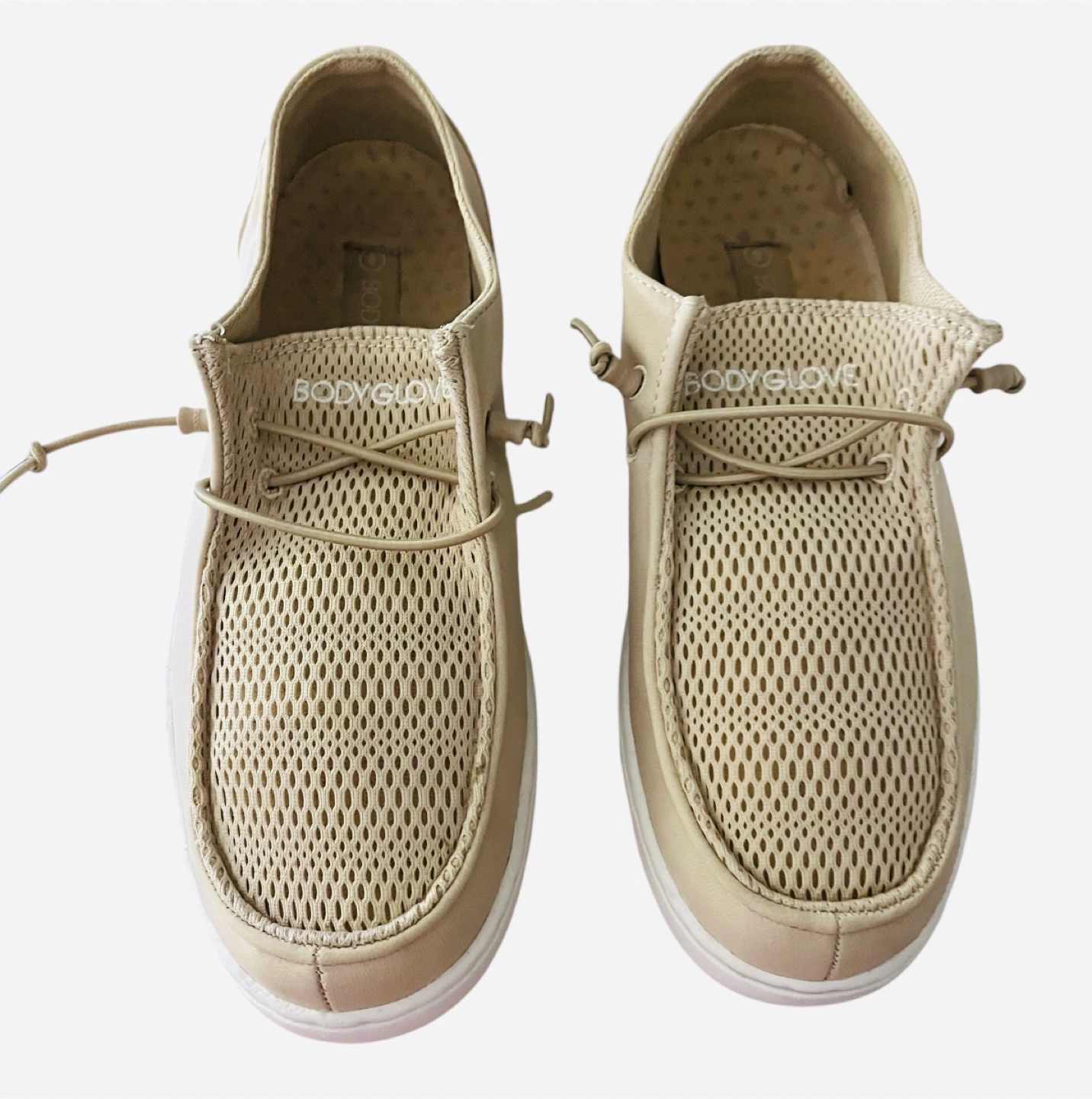 Effortless style meets all-day comfort in these Body Glove slip-on shoes. Designed for land and water. Floating shoes for paddle boarding, surfing, swimming, boating. Quick dry design does not hold water. From water to land these are the quintessential summer shoe. The breathable mesh upper keeps your feet cool, while the easy slip-on design with decorative laces adds a touch of nautical flair. Style: Boat Shoe/Water Shoe/ Surf Shoe/ Beach shoe Color: Beige Department: Womens Type: Casual Upper Material: Textile US Shoe Size: 8 Closure: Slip On Lining Material: Fabric Pattern: Solid Features: Breathable, Comfort, Lightweight, Cushioned, Slip On Insole Material: Foam Outsole Material: Rubber Model: Slip On Boat Shoes Great Condition Length of sole 11" Width of sole at ball of foot 4" PU Ottawa & Strasburg, Kitchener Keywords: Body Glove, Slip On Shoes, Boat Shoes, Loafers, Beige Shoes, Casual Shoes, Comfort Shoes, Youth Shoes, Mesh Shoes, Slip On Loafers, Beige Loafers, Comfort Loafers, Casual Loafers