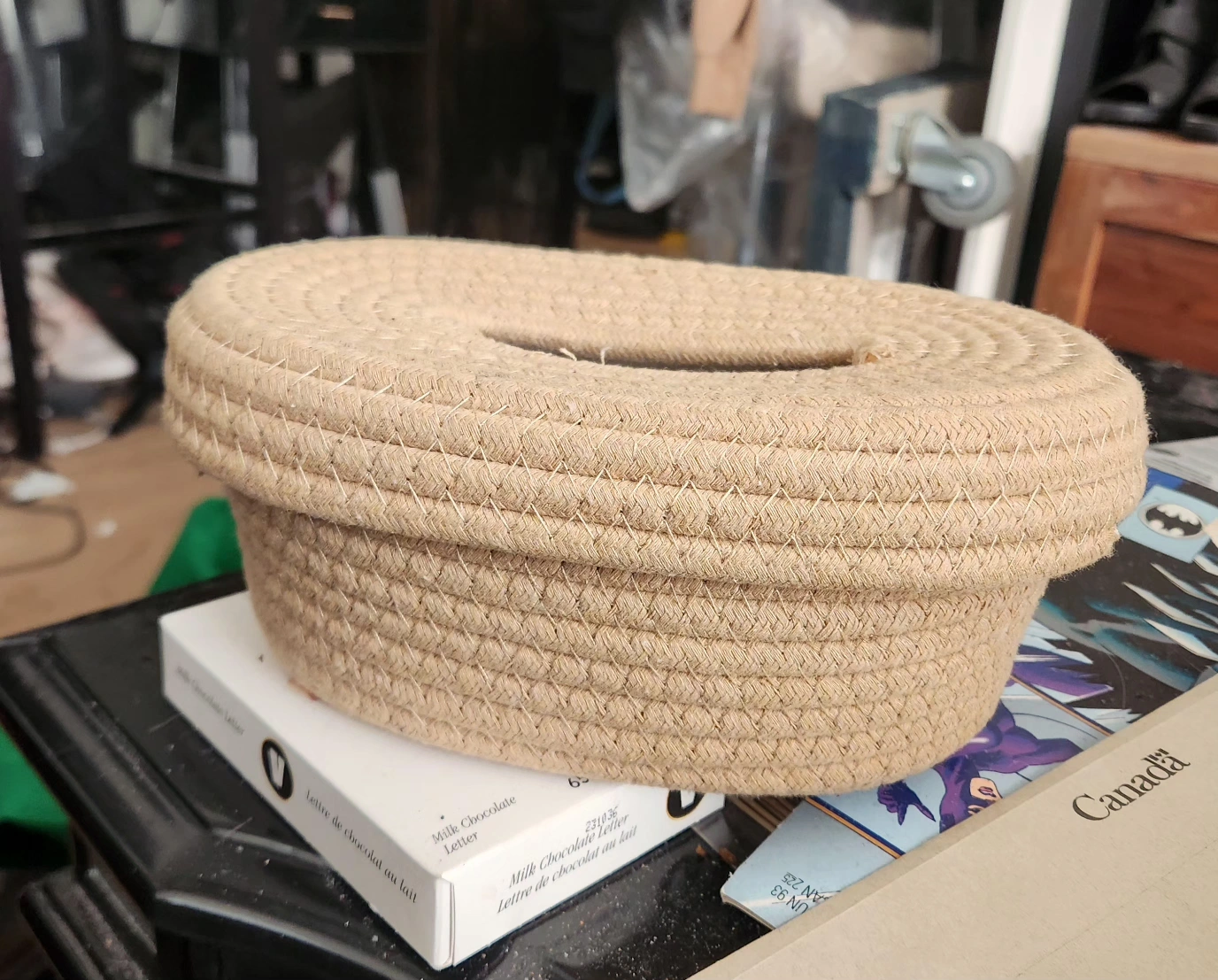 #Freecycle The basket is made from a beige woven material. It features a circular design with a hole in the center. A great piece for your kleenex. * First Come First Serve * * Pickup Only * * Serious Offers Only *