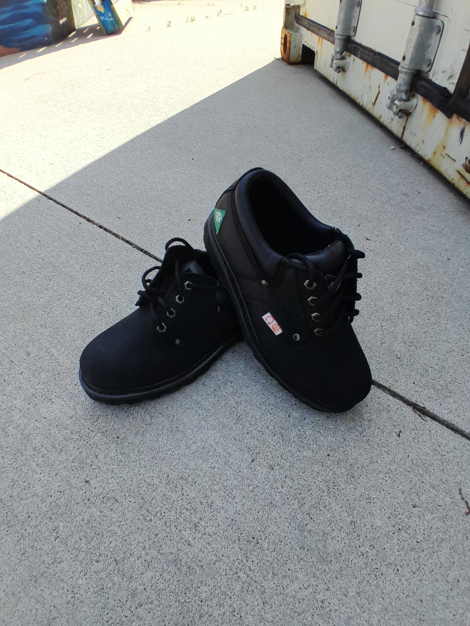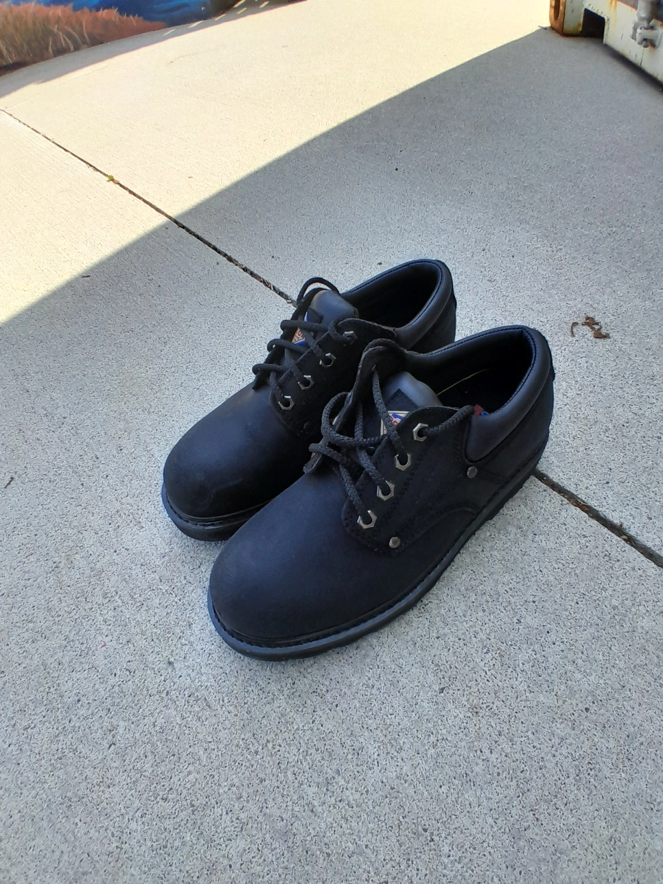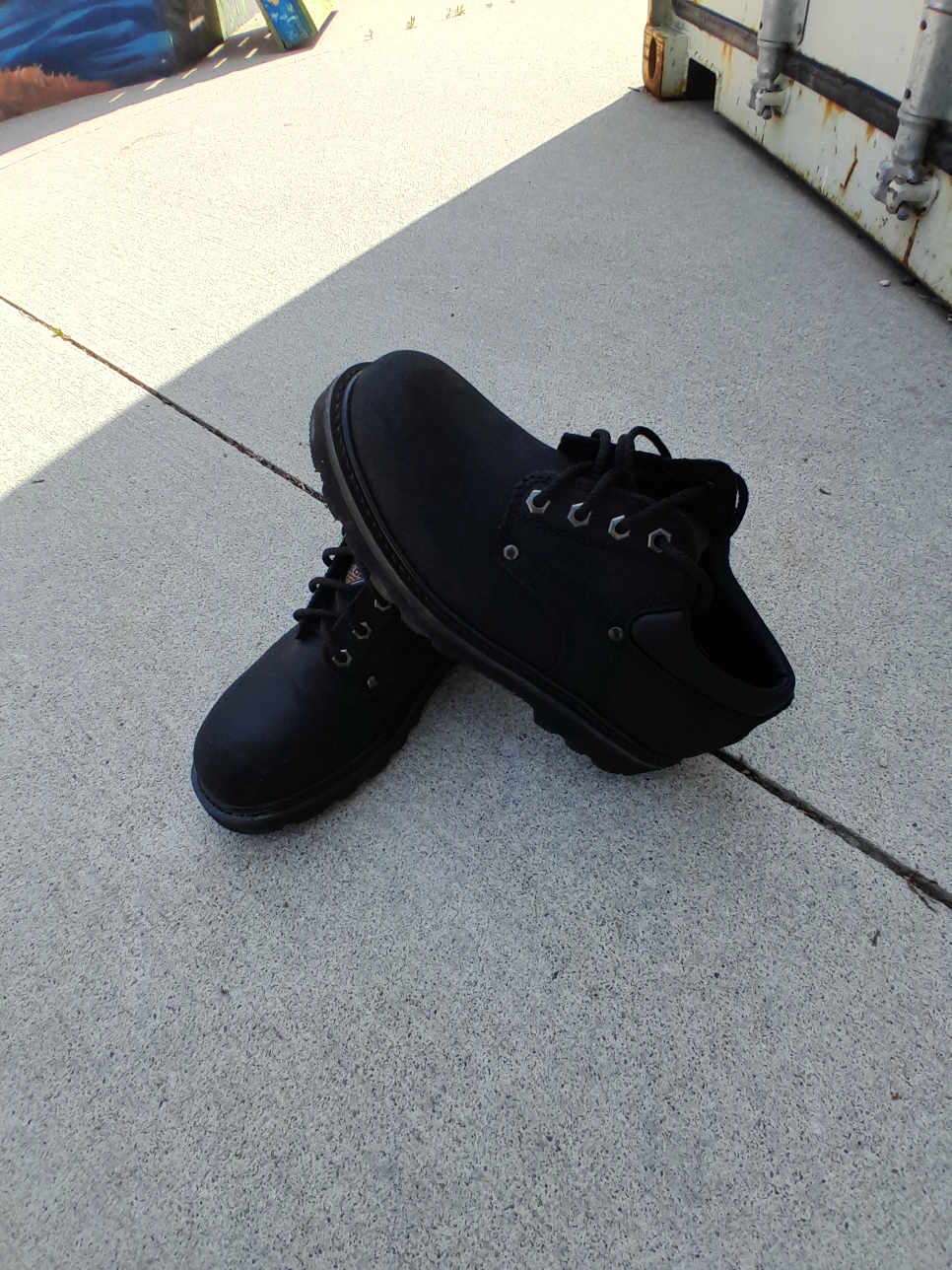 Safety Shoes solid black. Feature lace-up closures and a sturdy outsole. Great for a variety of outdoor activities, just take your time and enjoy the day. size 8. 100% authentic used like new excellent condition. (24hrs Free delivery within GTA) Door Drop off/ Pick Up available Postal Services Nationwide Available Pick Up Locations: Mississauga or Toronto .