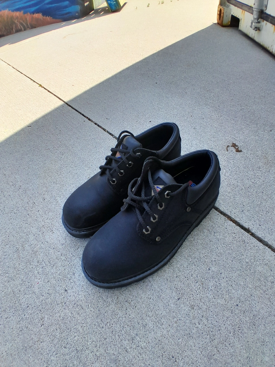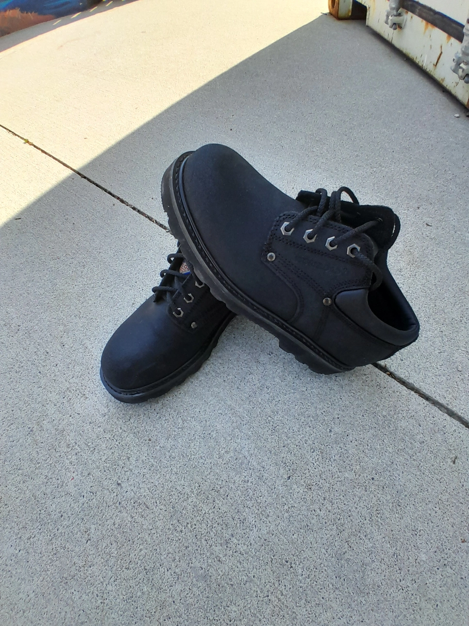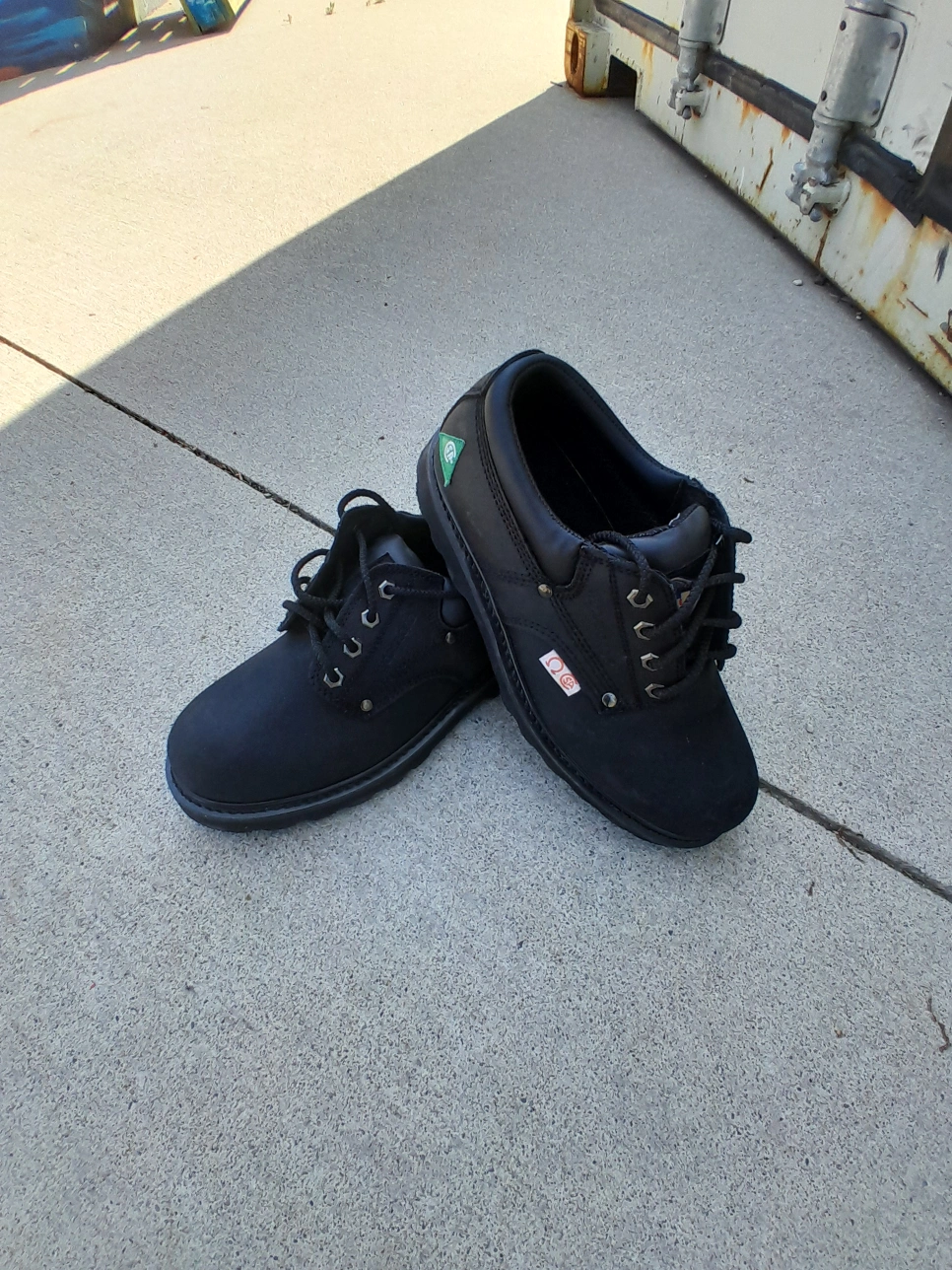 Safety Shoes solid black. Feature lace-up closures and a sturdy outsole. Great for a variety of outdoor activities, just take your time and enjoy the day. size 8. 100% authentic used like new excellent condition. (24hrs Free delivery within GTA) Door Drop off/ Pick Up available Postal Services Nationwide Available Pick Up Locations: Mississauga or Toronto .