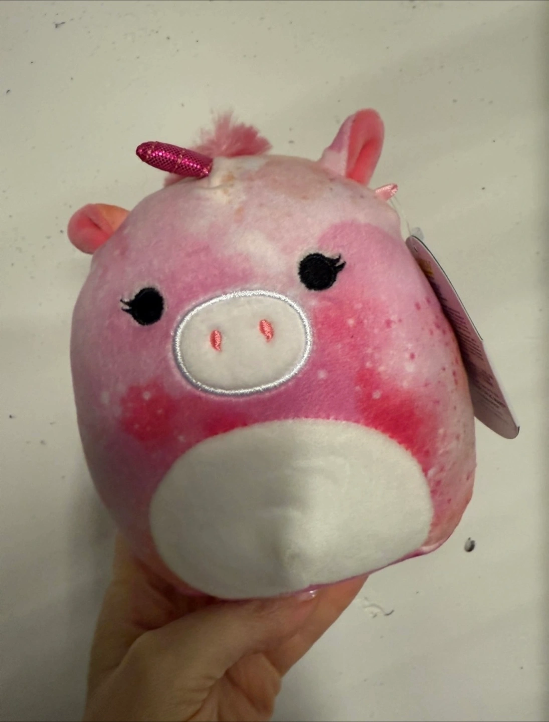 A soft, pink unicorn plush. Featuring a horn, mane, and a cute face. A comforting item for all ages.