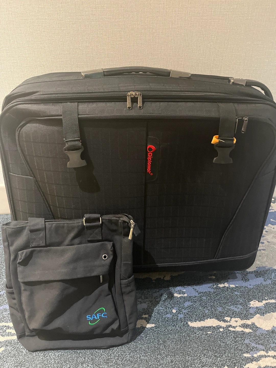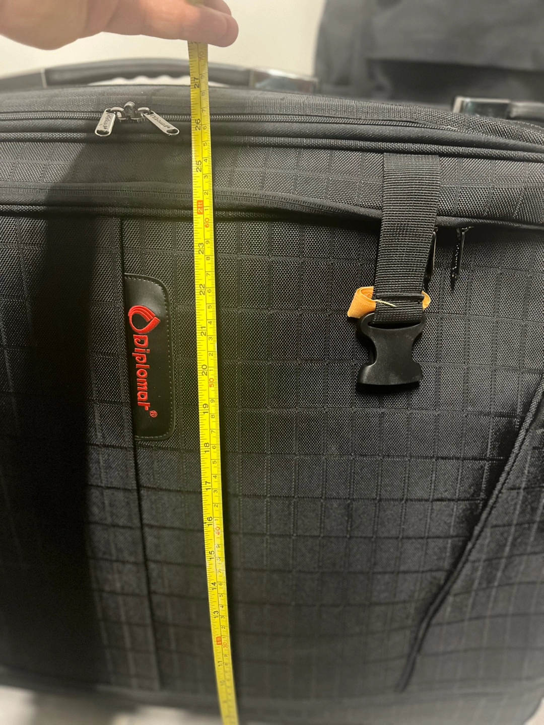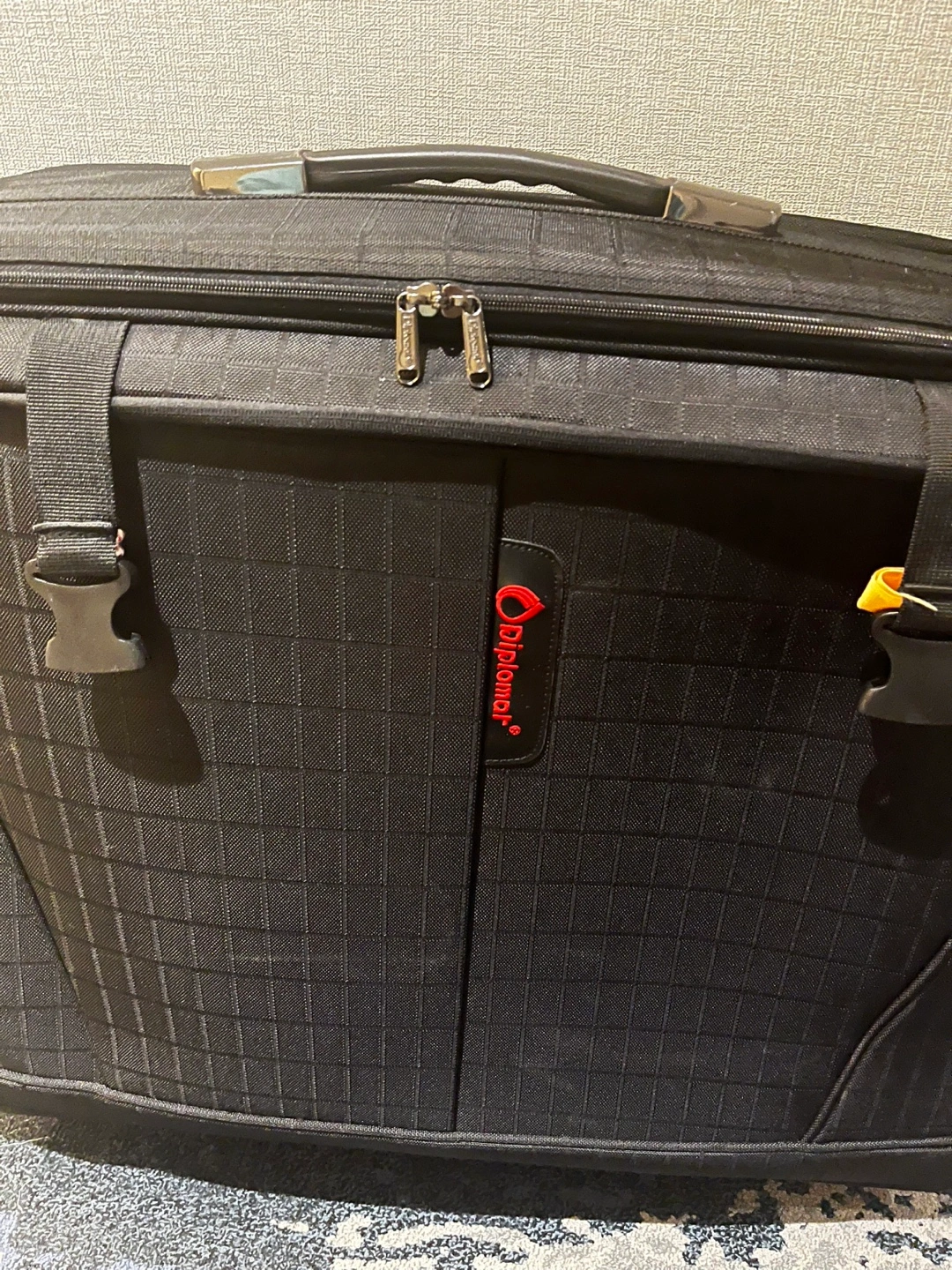 Black rolling suitcase with a matching black tote bag. Zippered main compartment, external compartments, and adjustable straps. Offers a generous interior space. Packing for your next adventure has never been easier. Set of Diplomat Luggage + Bonus Bag β Only $32 Selling this solid and spacious Diplomat suitcase in great condition. π§³ Dimensions: Approx. 30β height x 20β width x 10β depth βοΈ Wheeled for easy transport βοΈ Comes with sturdy side handle and leather grip β no retractable handle, but very easy to carry π Bonus bag included! (worth at least $15 on its own) β perfect for daily use or extra travel storage β All zippers and buckles work perfectly β Clean and well-maintained π¦ Selling due to moving β reduced from $50 to just $32for everything!