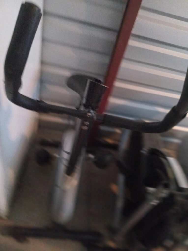 Upright exercise bike. Handlebars on the top. Seat in the middle. A great way to wind down your day.