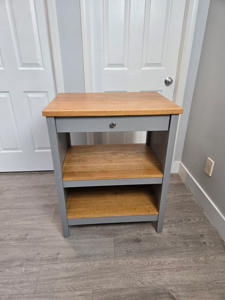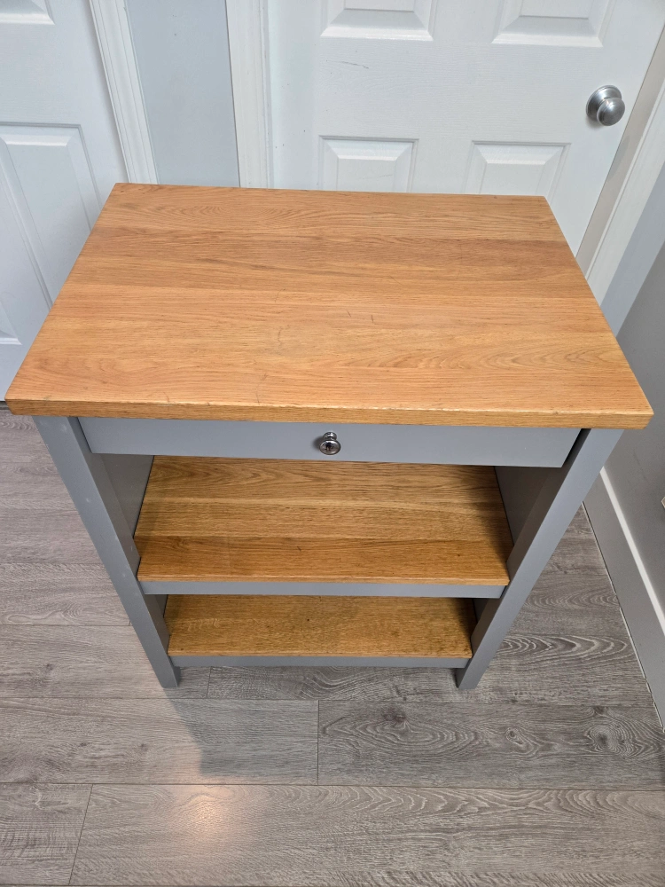 Newly refinished butcher block kitchen island ikea tornviken The 3 butcher blocks have been sanded down smooth. Premium butcher block oil has been applied to refresh it. 2 light coats of polyurethane was applied to the butcher block making it more durable. Plesse note - there were deep cut marks on the top butcher block. It has been wood filled and sanded smooth with the 2 coats of polyurethane. Minor cosmetic imperfections on the frame, too small to photograph. This is a quality kitchen island from ikea using real wood frame and real butcher block that retails for 429 plus tax. Measurements in photos. Pick up near 22nd skytrain price is firm