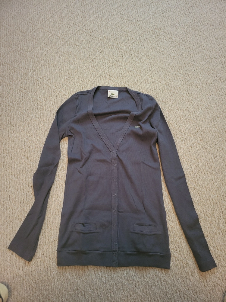 A lovely long sleeve cardigan. Features button closures down the front. Small pockets on the front. The perfect choice for layering.