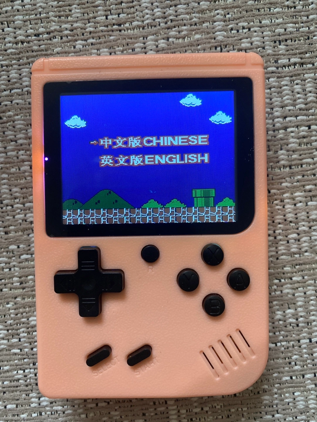 A retro-looking handheld gaming console. Features several control buttons, as well as a small screen to play the games on. Great for road trips. 35+ games to choose from. Comes with usb charger.