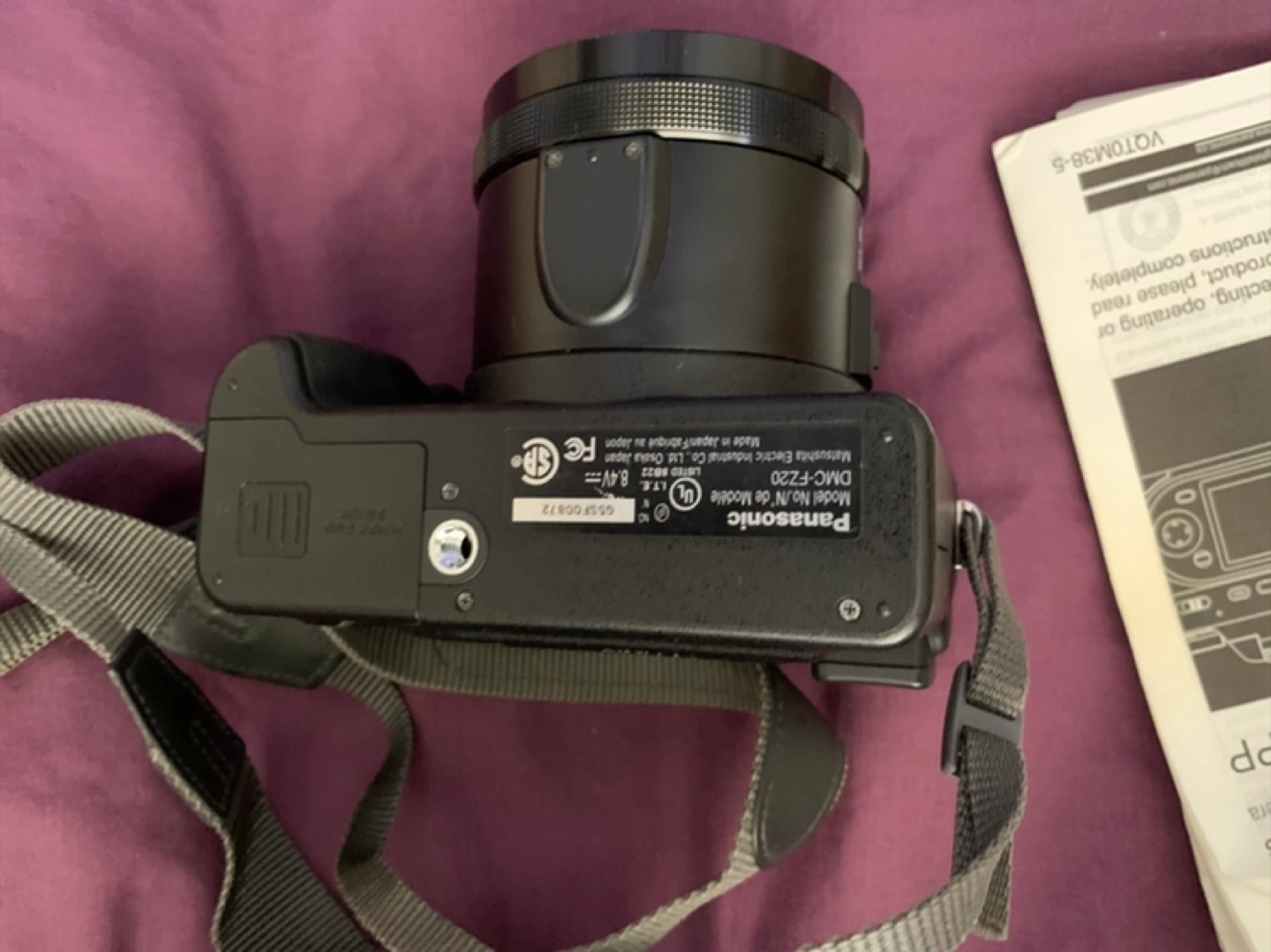A sleek, black camera with a lens cap and a grey strap. Included is the manual and a CD. It is a great item to help you capture memories. MIN. Res 8.1 MP 10.1 - 12 MP