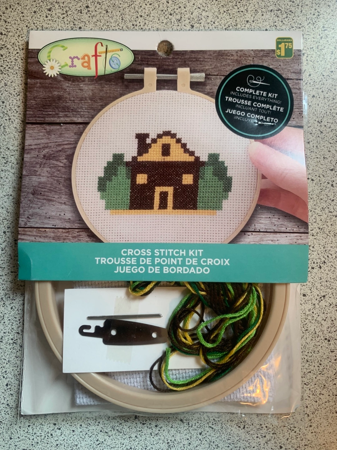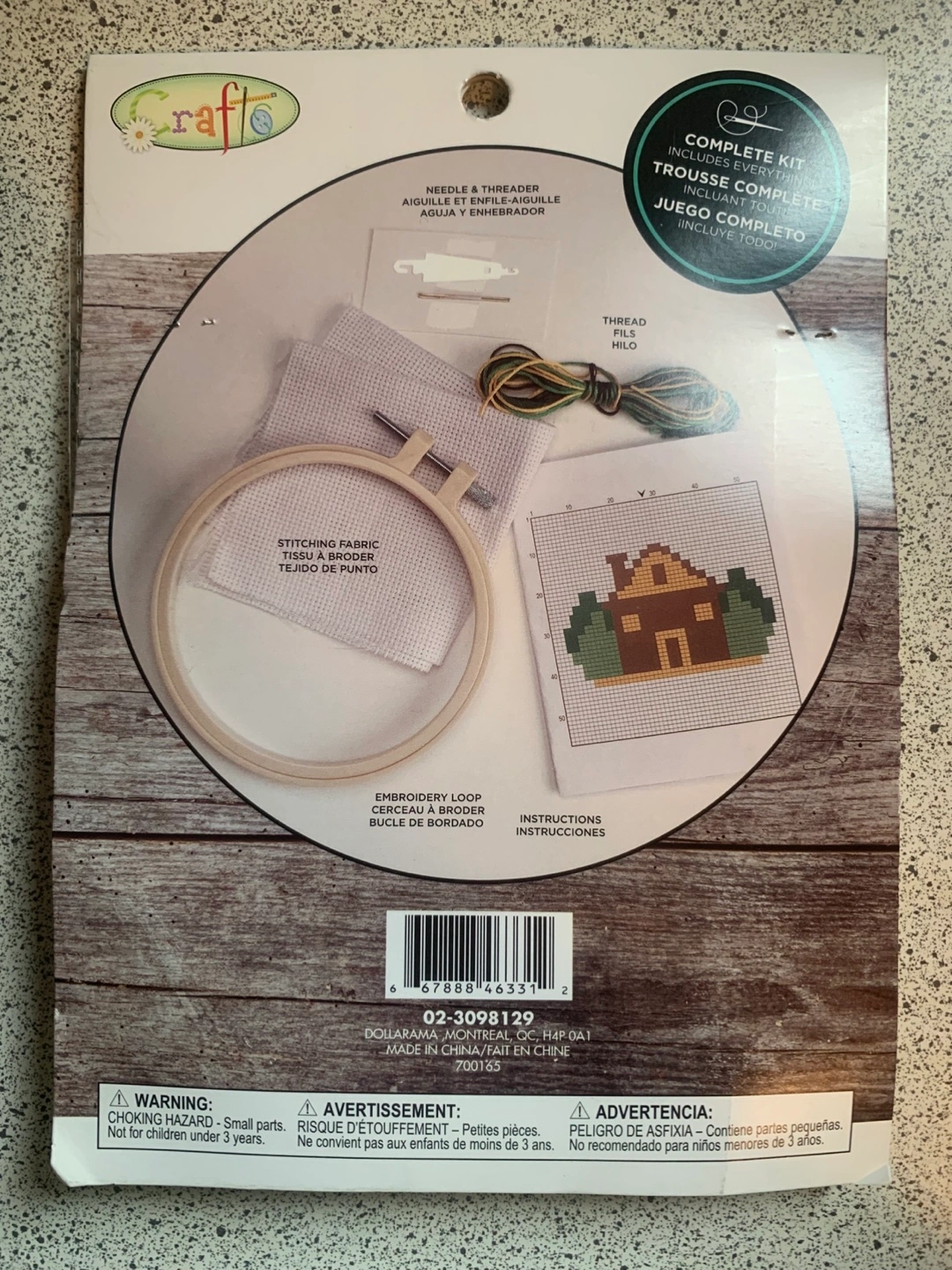 A lovely cross stitch kit, containing a hoop, needle, thread, and fabric. A creative pastime to destress and unwind.