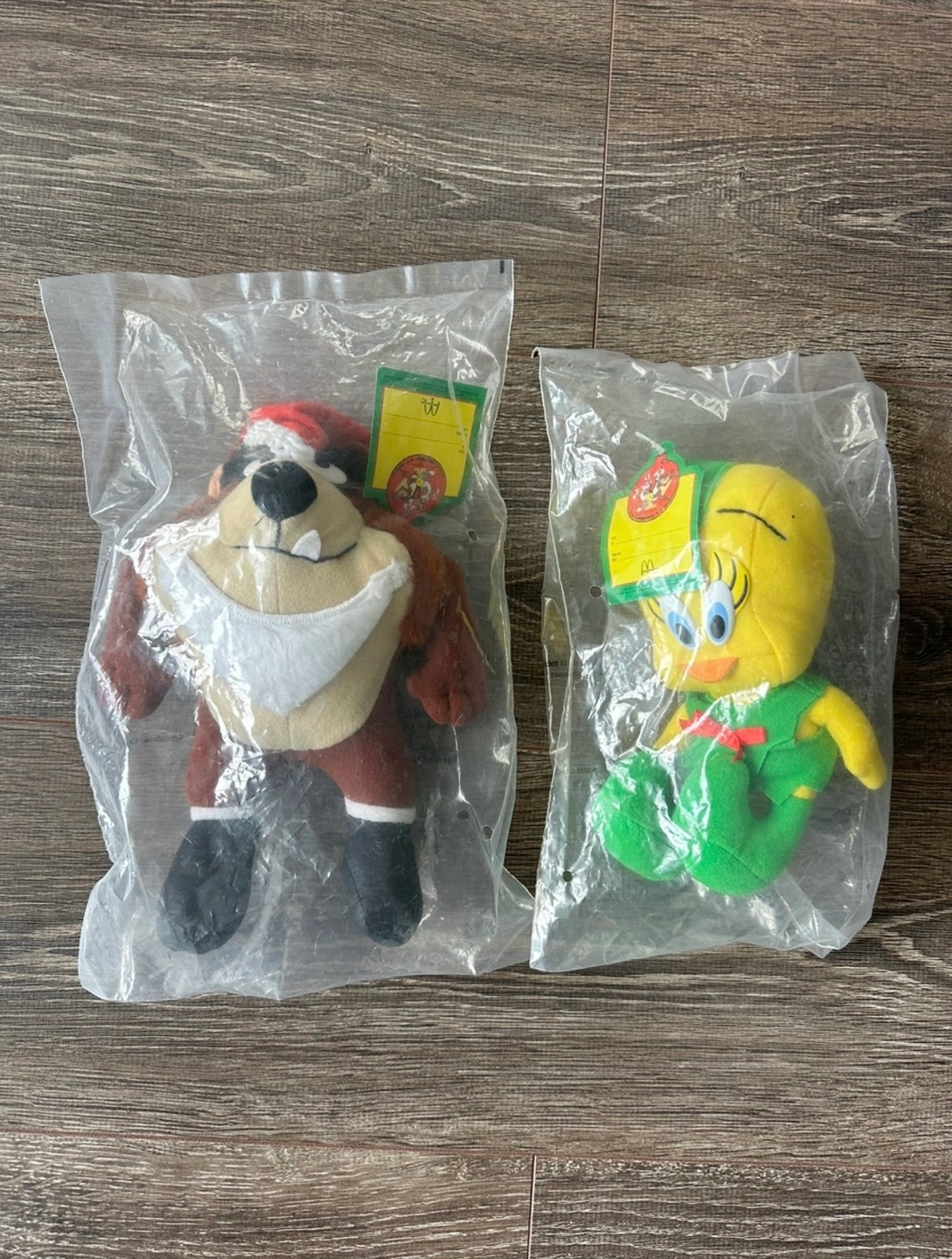 Here are two vintage Looney Tunes plush toys still in their original packaging. A perfect addition for any collector, or to bring you a sense of nostalgia. One looks to be Taz wearing a Santa hat and the other is Tweety Bird. $16 for the pair