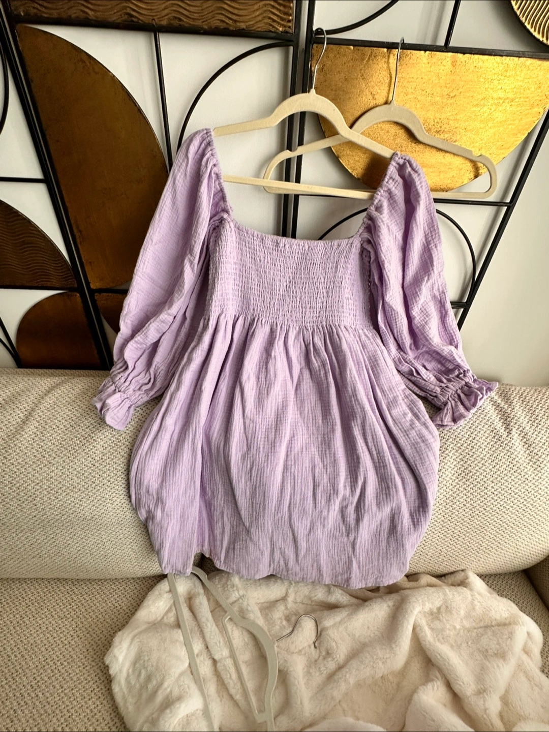 Selling a cute abc dress in a lovely lavender colour! It's made of 100% cotton and would be perfect for spring or summer!