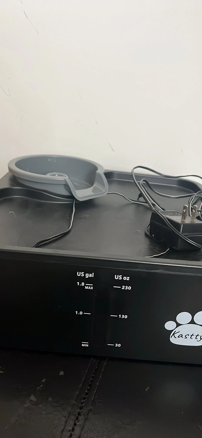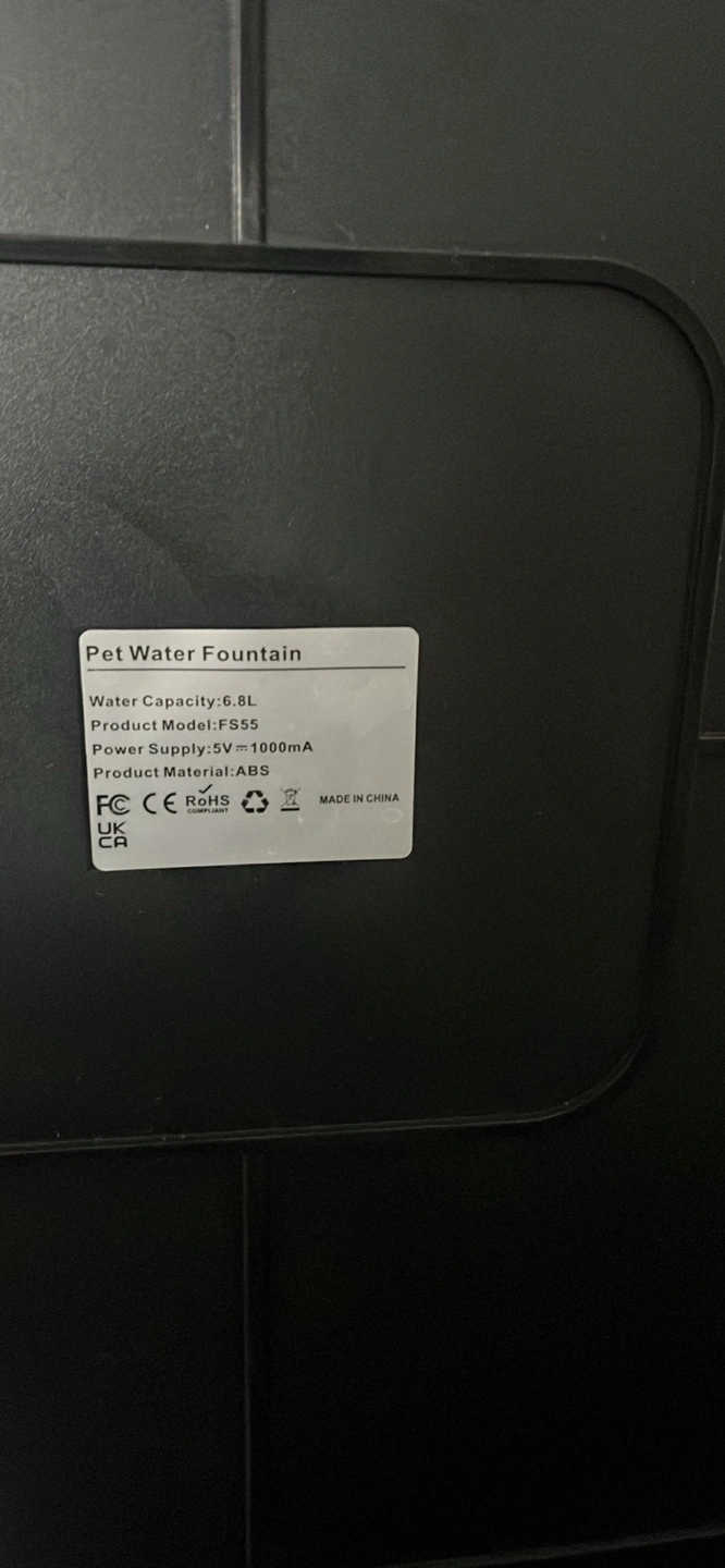 I'm selling a Kastty pet water fountain. It has a 6.8L water capacity, perfect for keeping your furry friends hydrated! The product model is ZS-S5 and it uses a 5V-1000mA power supply. It's made of durable ABS material