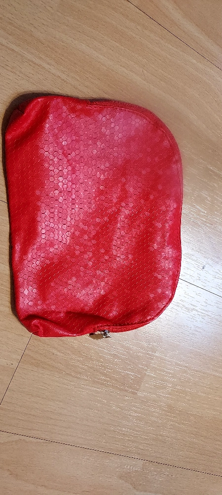 Sephora cosmetic bag. It's in great condition and perfect for storing your makeup or other small items. It's a vibrant red colour with a unique textured pattern Available till July 8th