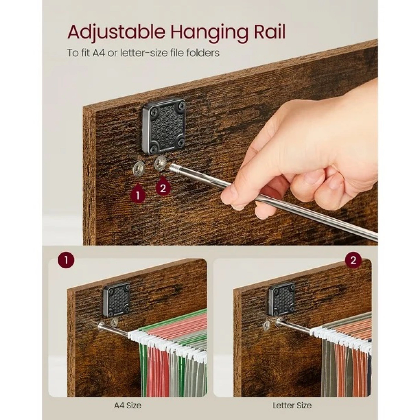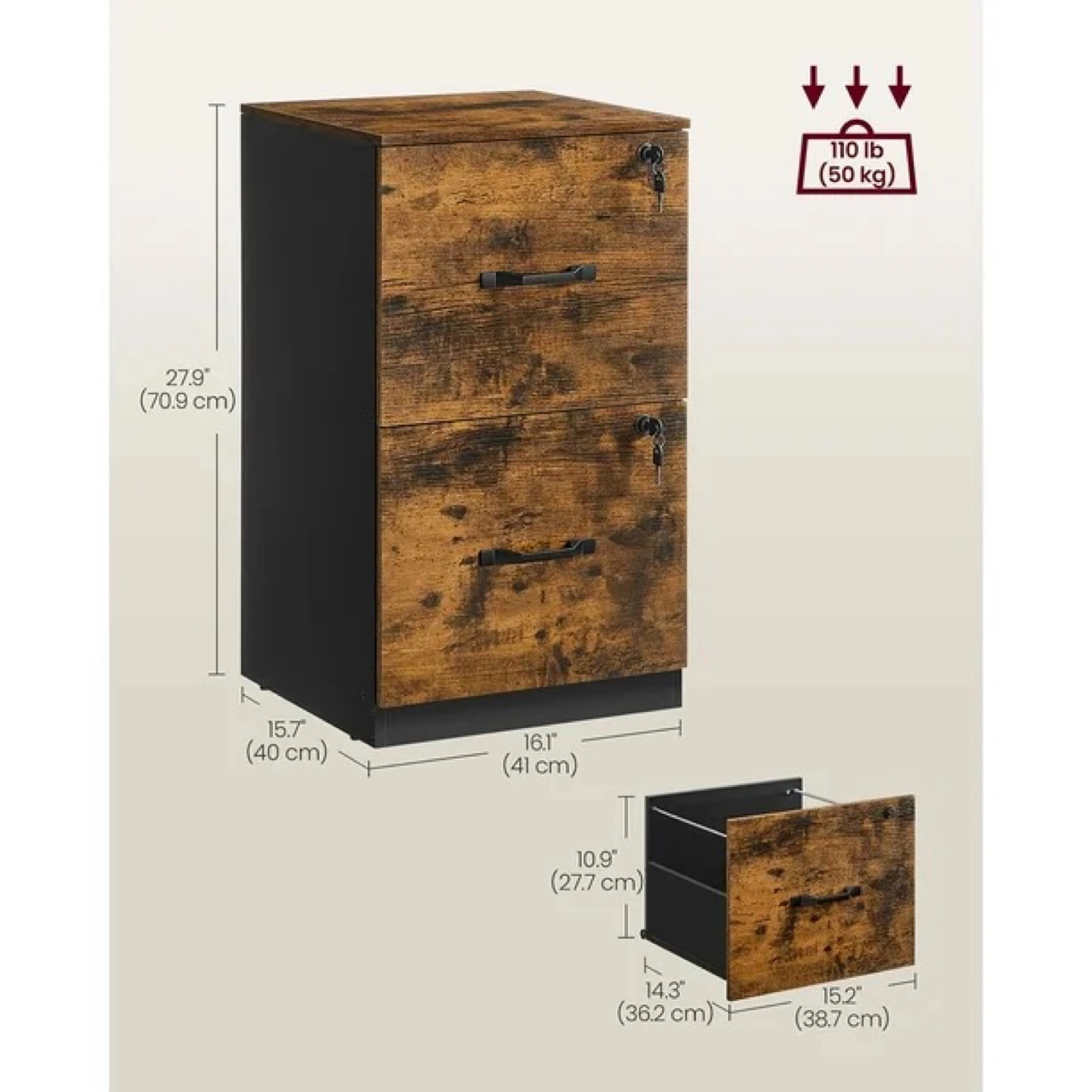 Keep your office essentials organized with this two-drawer filing cabinet! It features an adjustable hanging rail to fit A4 or letter-size file folders. The cabinet has a rustic brown and black finish with two roomy drawers. Dimensions are approximately 27.9" (70.9 cm) in height, 15.7" (40 cm) in width, and 16.1" (41 cm) in depth. Retail Price + Tax = $142.37 Meet/Pick-up Keele & Eglinton CASH ONLY 100.000.054