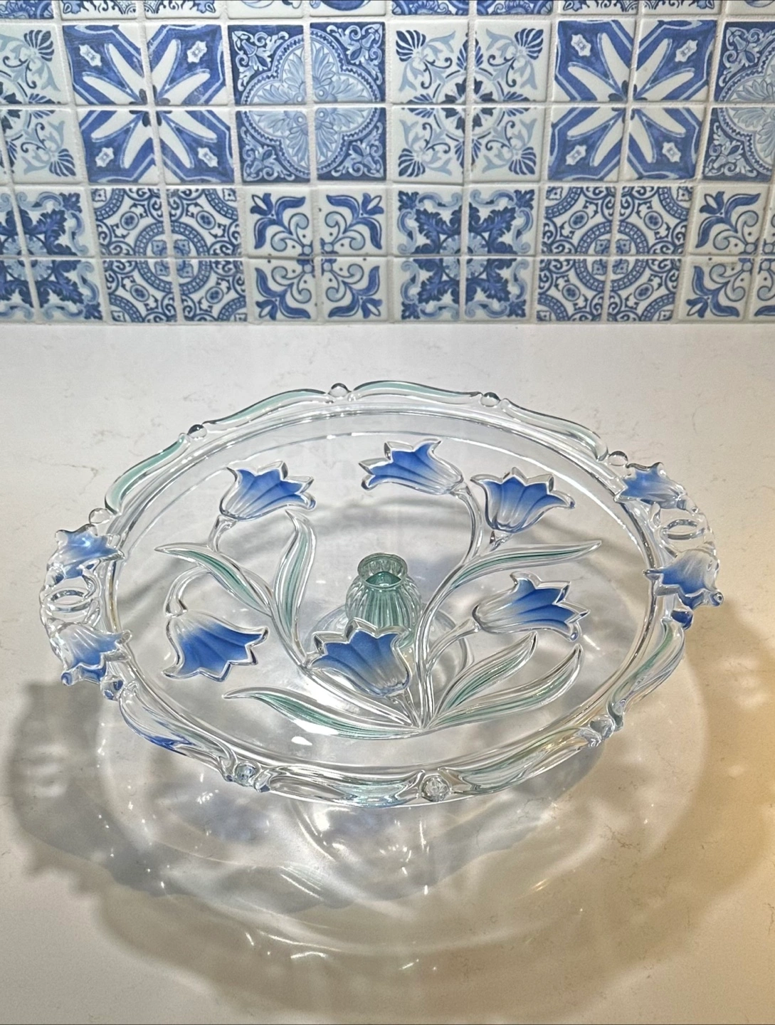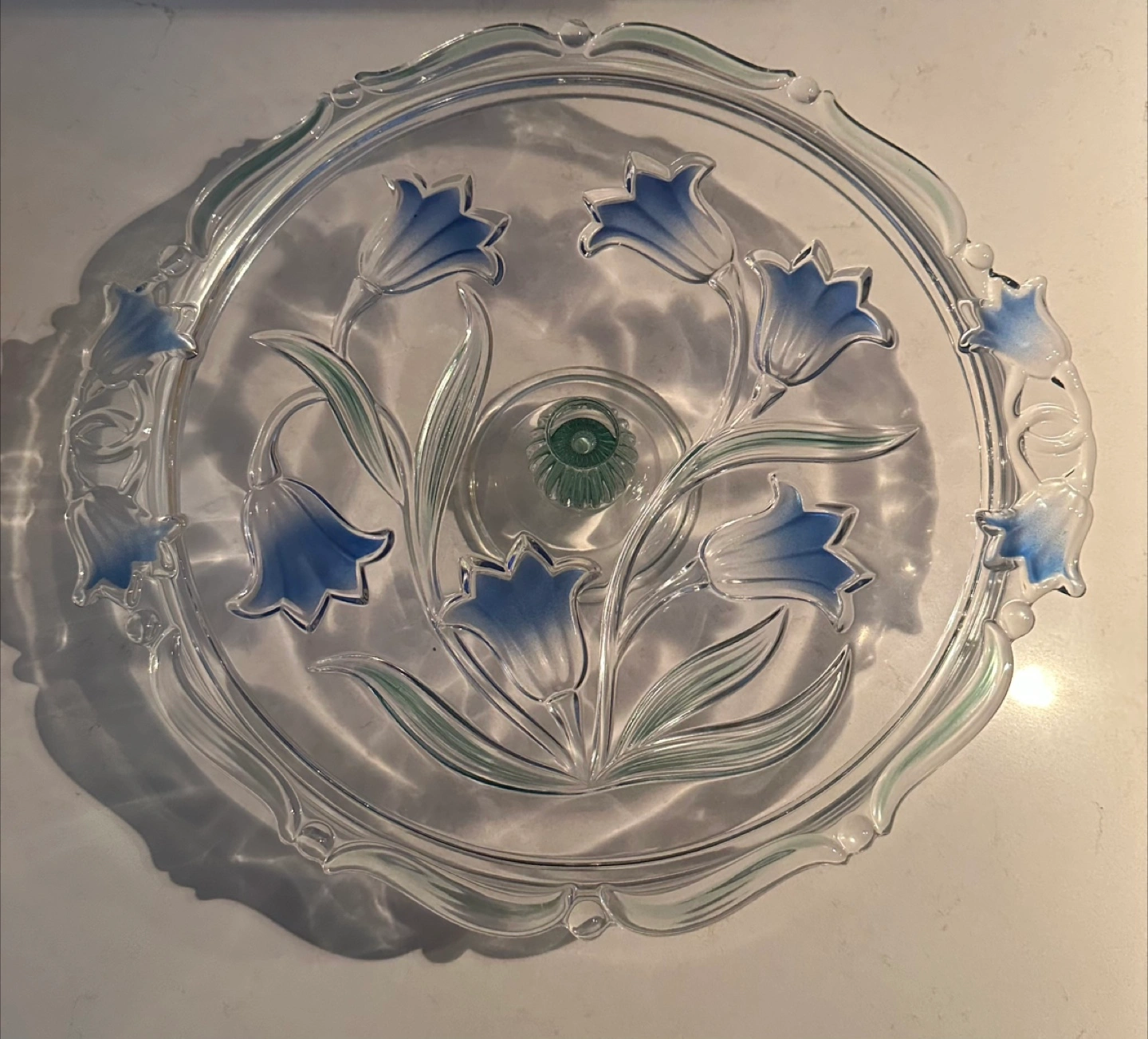 Vintage Mikasa Crystal Pedestal Cake Plate. Discontinued Bluebells pattern. It's perfect for displaying desserts, appetizers, or other treats at your next gathering. It would look beautiful on any table! Cash payment. Pick-Up in Pickering (Brock & 401).
