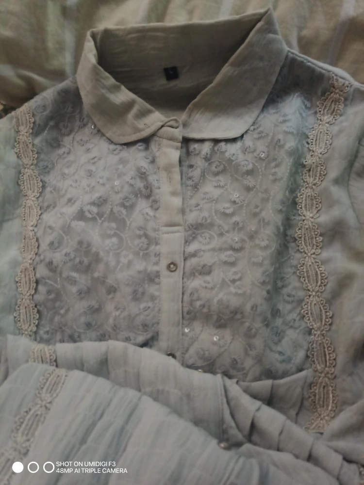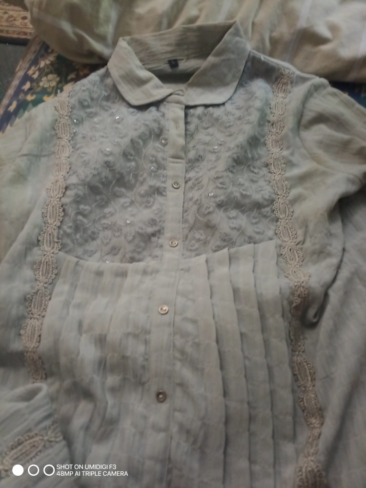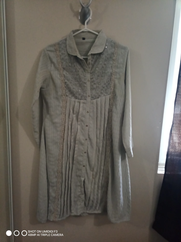 Here's a cute grey button-down dress! It features lovely detailing on the front and a collared neckline. Perfect for a casual or dressed-up look. $30 already discounted for $15 for final sale with medium bra free.pickup only