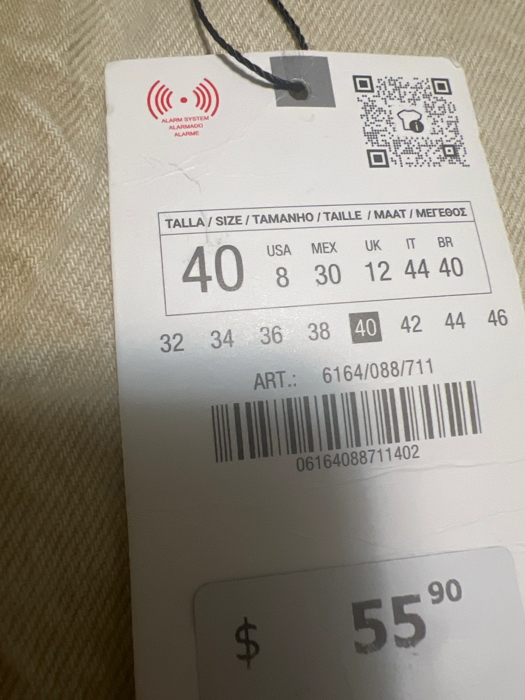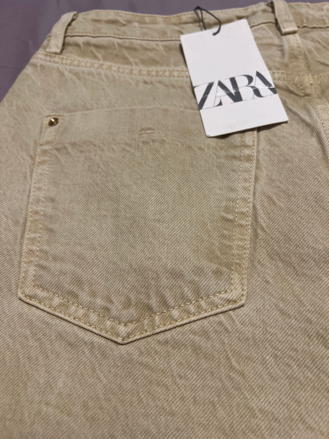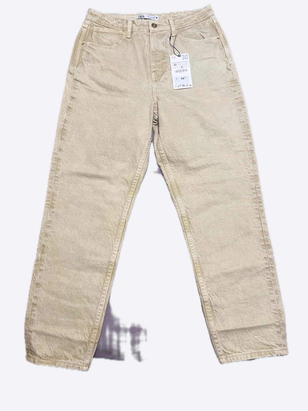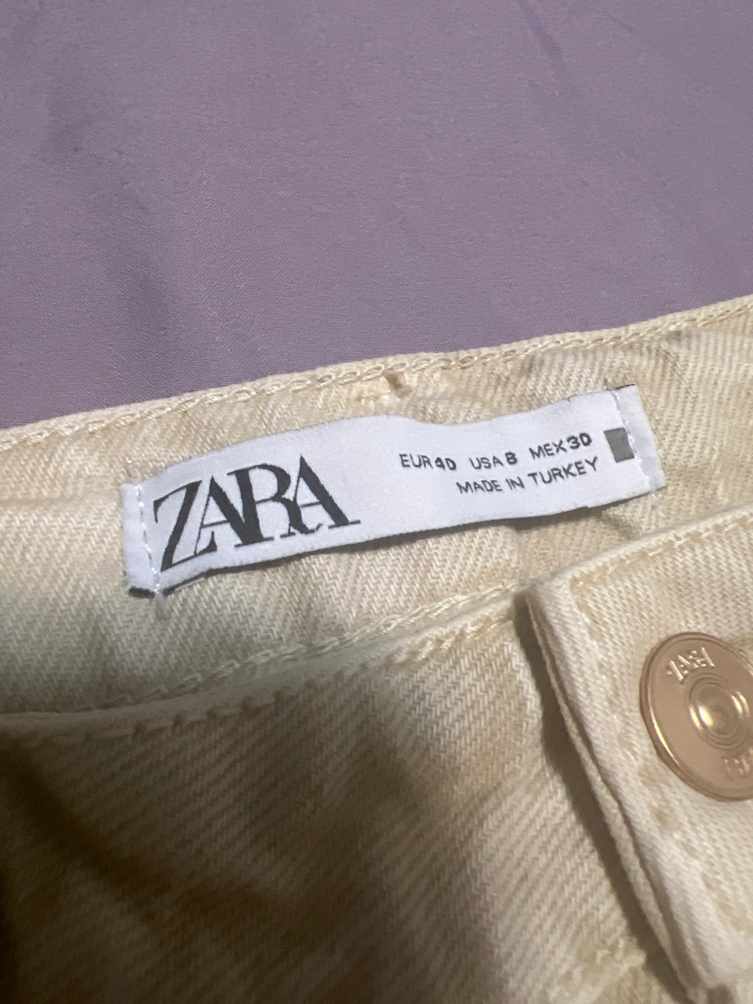 Selling a pair of Zara beige denim jeans - brand new! They are a size 8 (USA) / 40 (EUR). The tag shows they were originally $55.90. Perfect for a casual, stylish look!