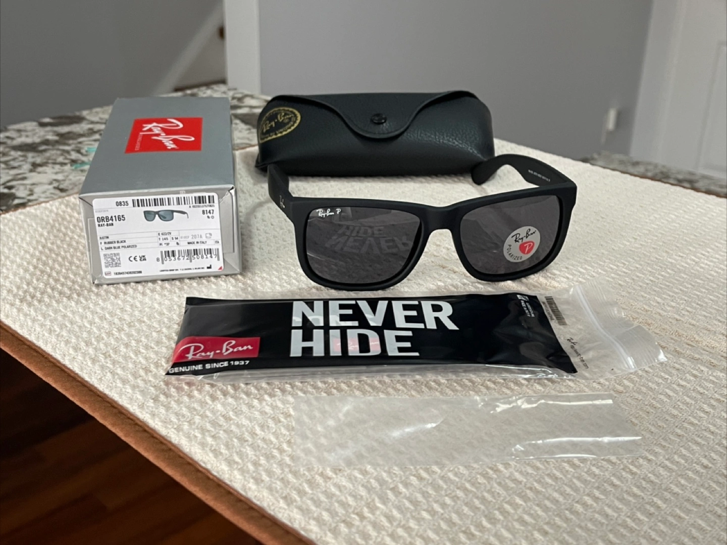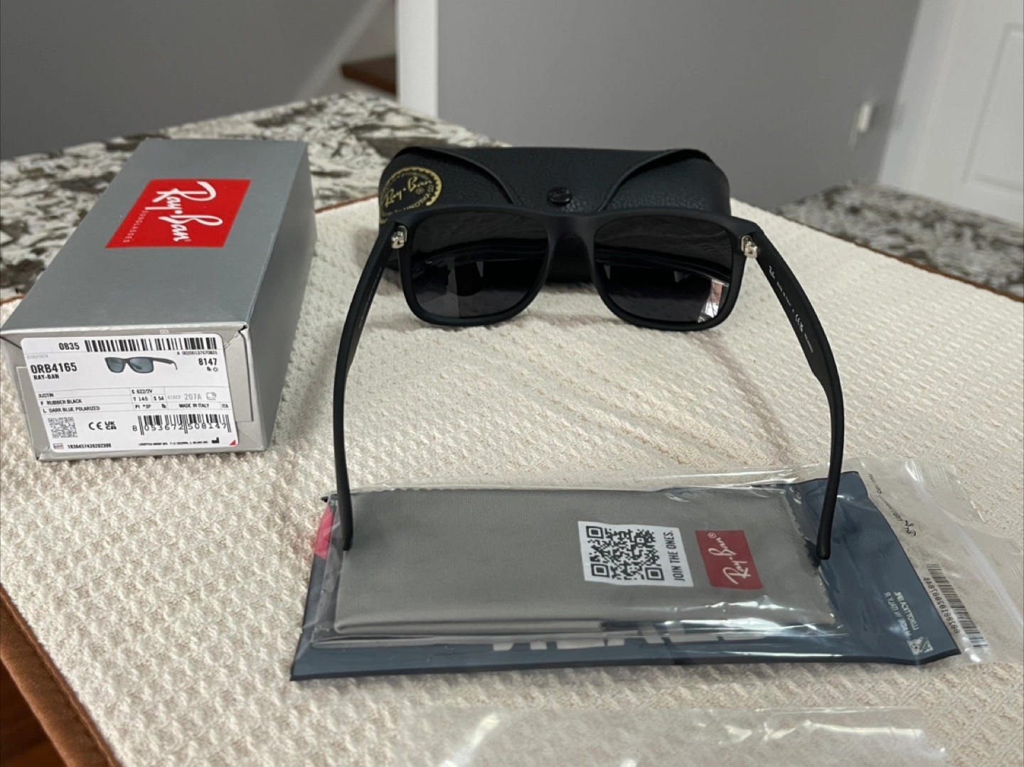 Brand New In Box Ray-Ban Polarized Sunglasses. MADE IN ITALY ๐ฎ๐น Frame Color: Matte Black Lens: Polarized Included: - RB Box - RB Case - RB Microfibre Cloth - RB Icons Booklet Pickup is Weston Rd and 401 area Shipping available through Canada Post