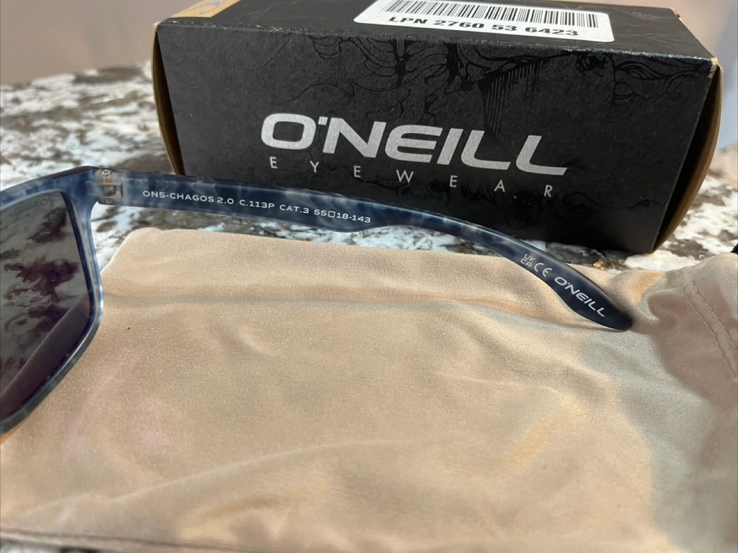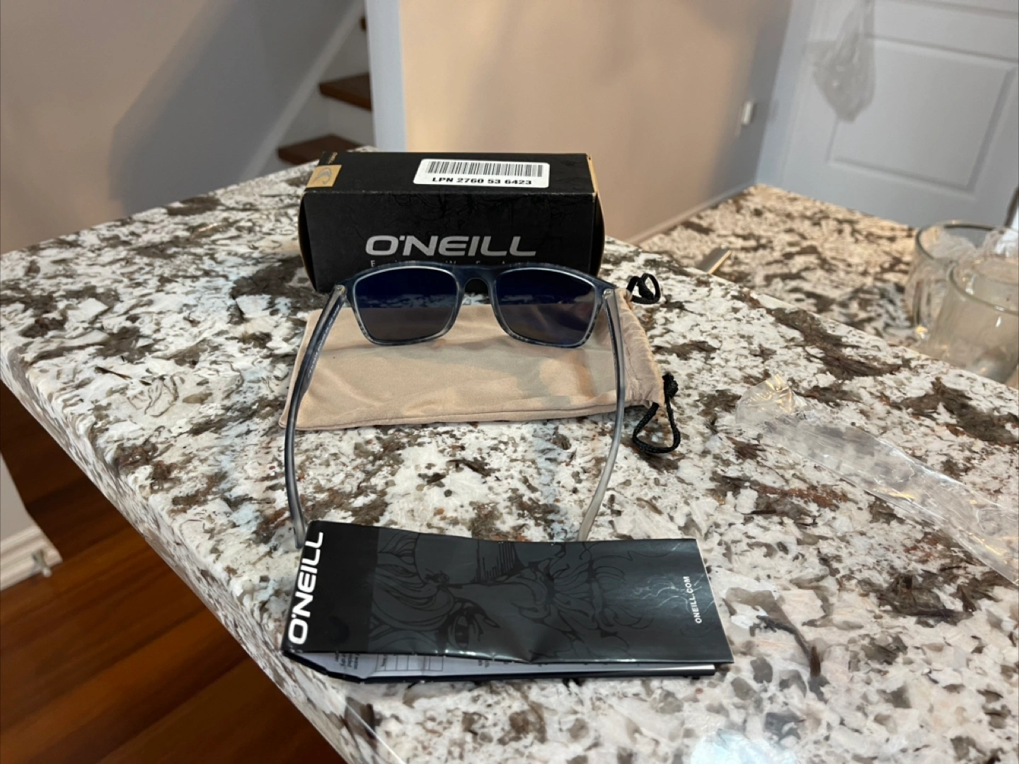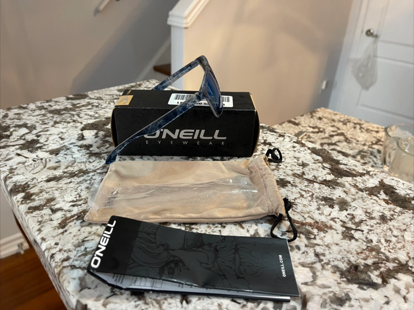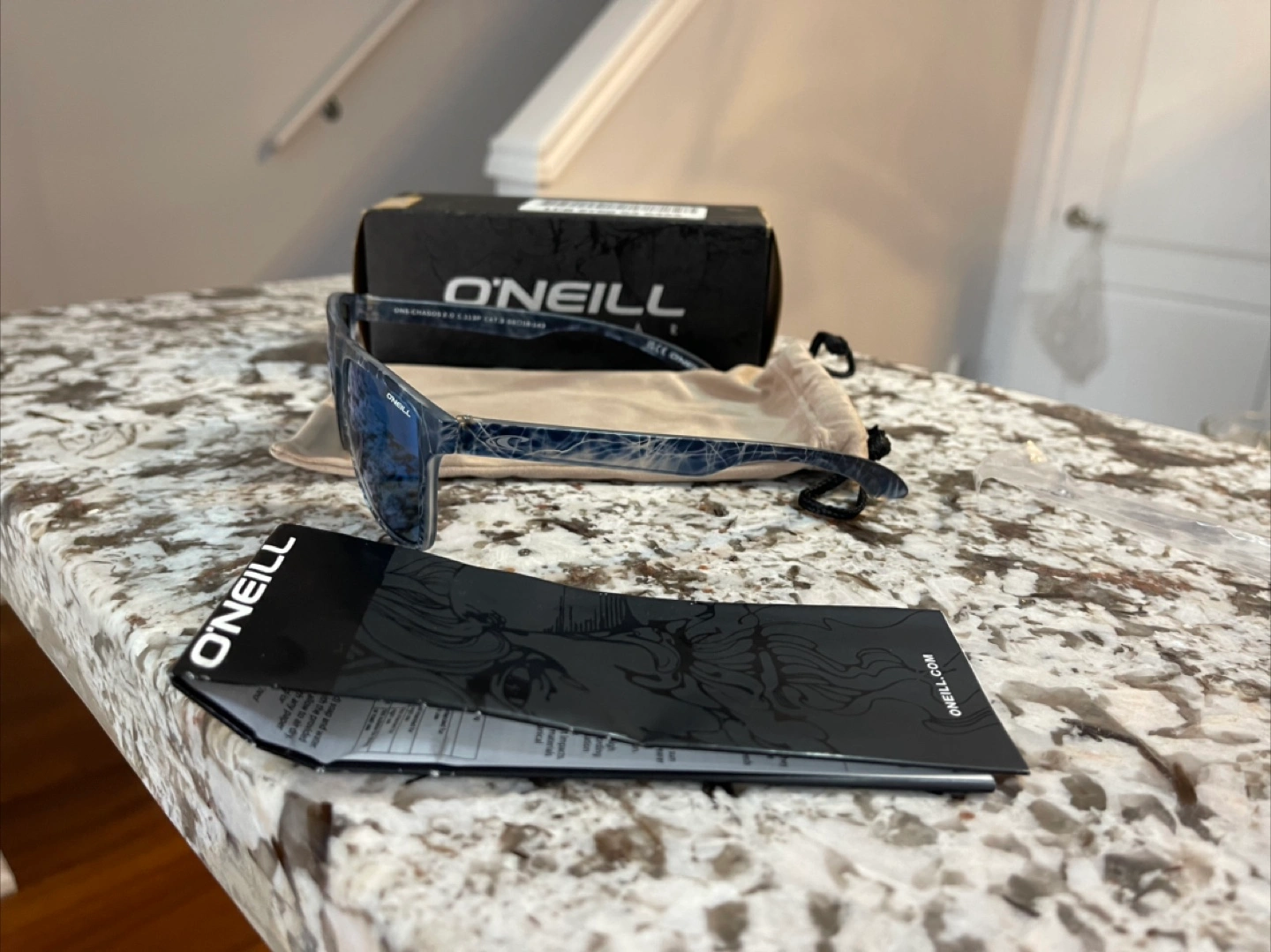 Brand New in Box O’NEILL Polarized Sunglasses Color: Matte Blue Water Lens: Polarized Size: 55mm Pick up is near Weston Rd and 401 area Shipping available through Canada Post About this item: O'NEILL CHAGOS 2.0 - water prints and color fades on a classic silhouette Matte blue water print frame with blue mirror polarized polycarbonate lenses that offer enhanced UV400 UVA and UVB protection ZEROFORM FRAME MATERIAL - impact resistant, lightweight and flexible. Precision-molded ergonomics for active people HYDROFREAK POLARIZED LENSES- supreme visual clarity, halo elimination, increased contrast, and truer colors. Repellent hydrophobic coating and tough scratch-resistant, backside anti-reflective coating