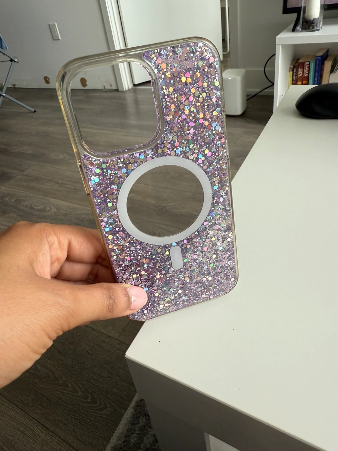 Selling a cute iPhone case with purple glitter! It's in great condition and ready for a new phone.