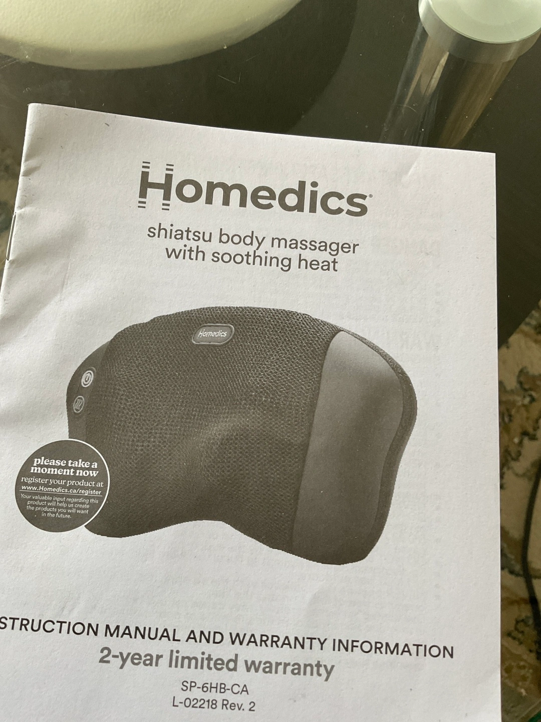 Selling a Homedics shiatsu body massager with soothing heat! it never used and comes with the instruction manual and warranty information. Perfect for relaxing after a long day