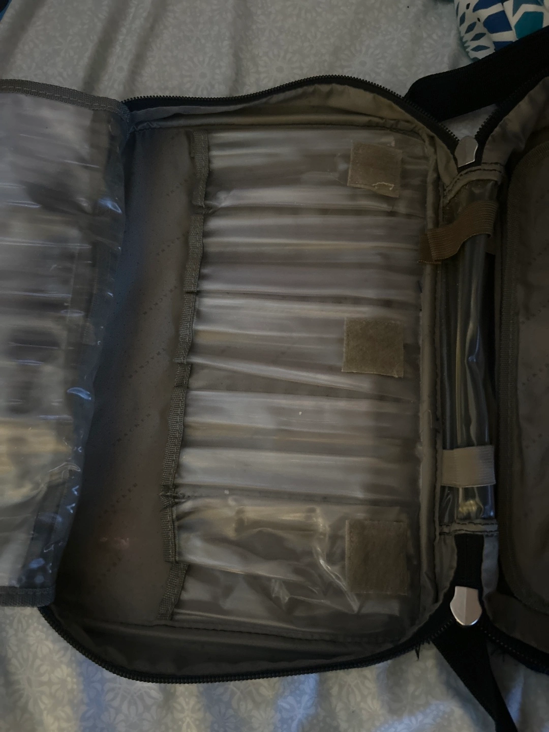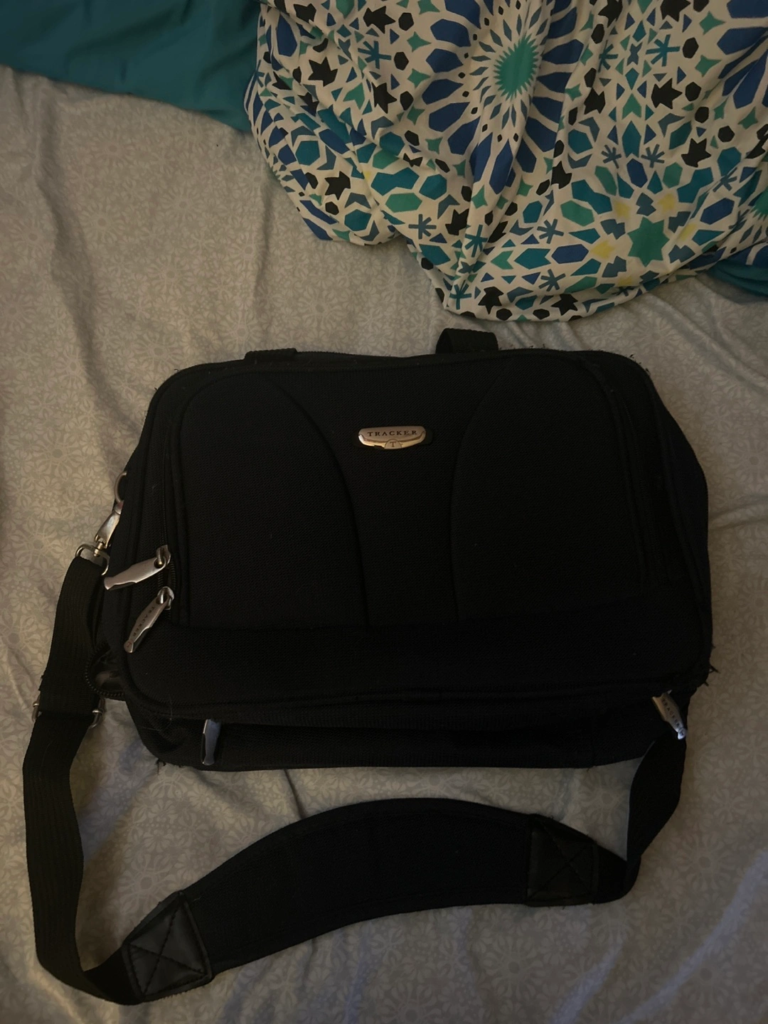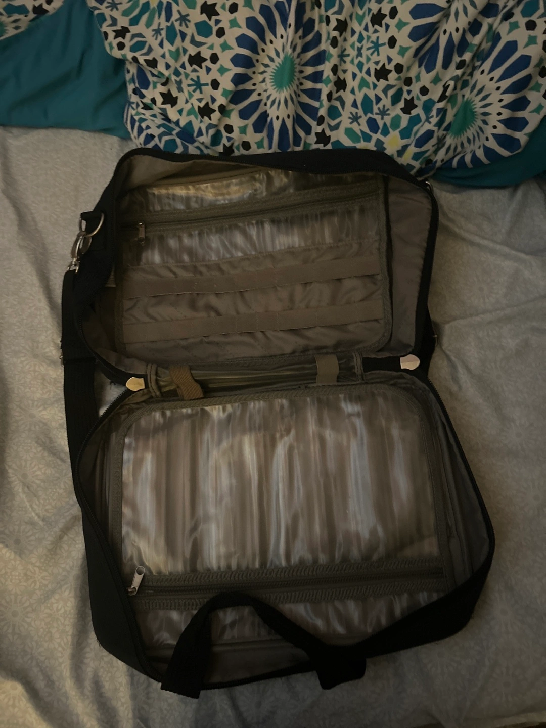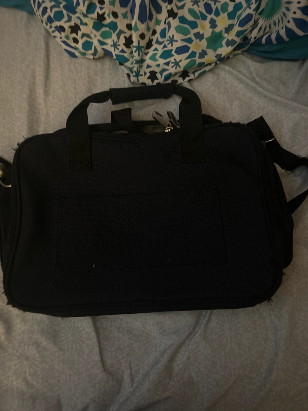 It’s a carry on bag with carry and an over the shoulder strap. Great condition, only damaged is inside on the plastic pockets; underneath the Velcro there is a little rip but that’s it.