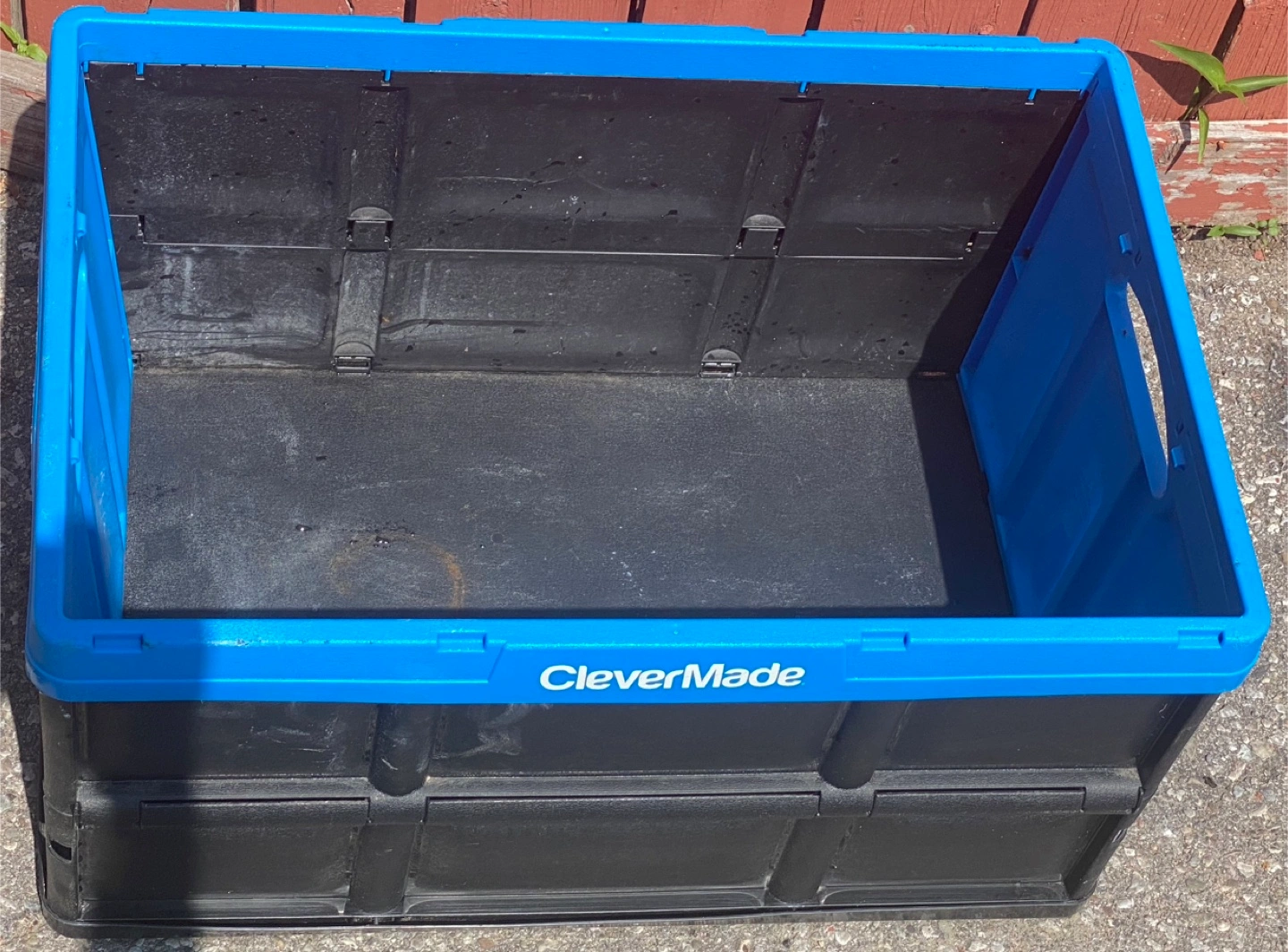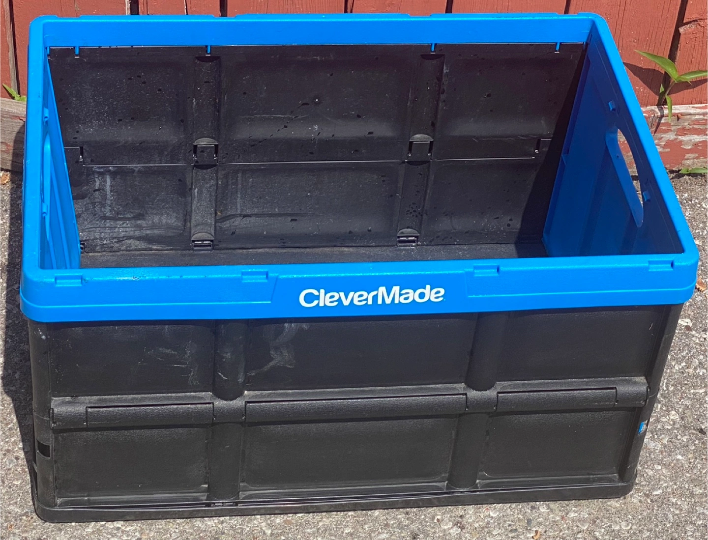 I'm selling a CleverMade collapsible storage bin. It's great for organizing things around the house or in the car. It's in great condition and folds flat for easy storage when not in use