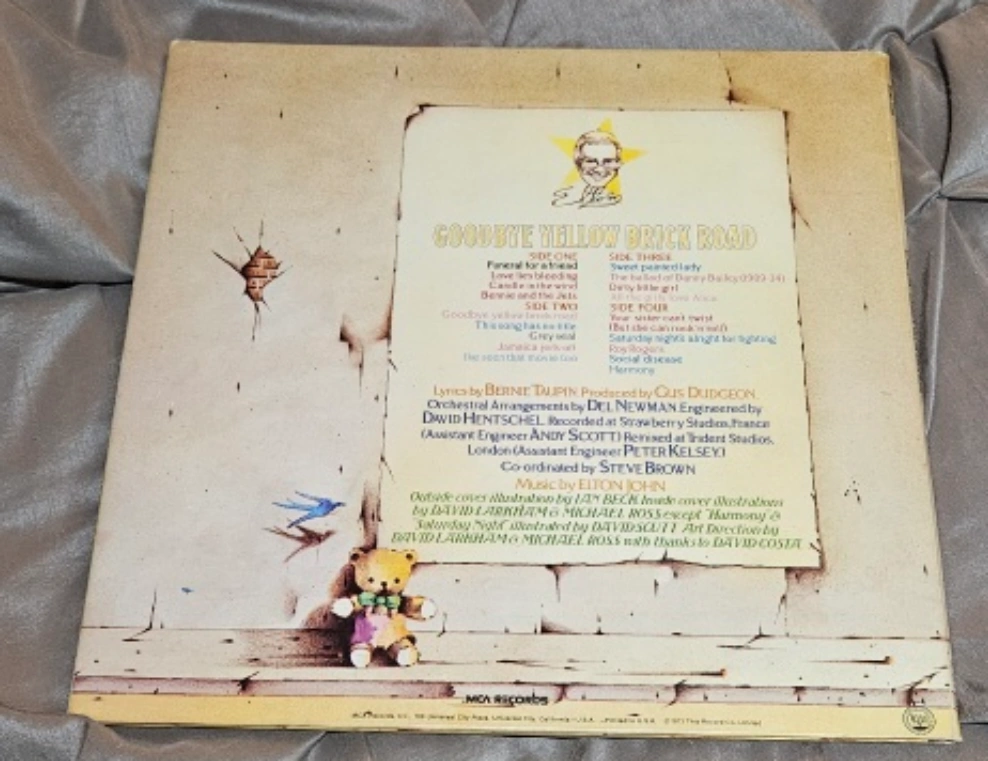 Selling a vintage Elton John - Goodbye Yellow Brick Road Vinyl LP. It's the original 1973 UK pressing in a tri-fold six-panel sleeve with red/brown translucent vinyl. A great addition to any record collection!