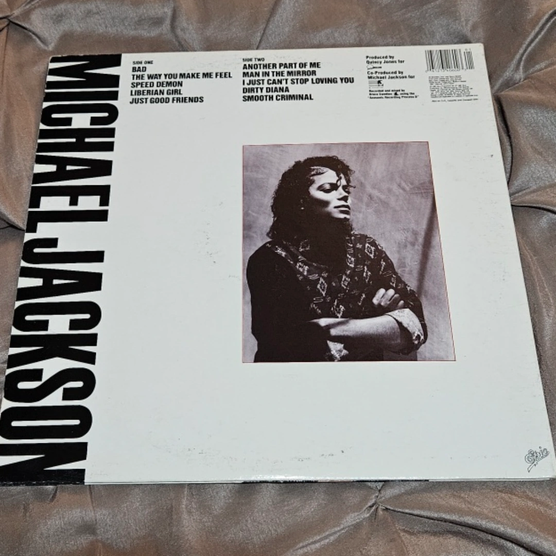 Selling a Michael Jackson - Bad vinyl record. It's in great condition and ready for a new home! Side one includes hits like Bad, The Way You Make Me Feel, Speed Demon, Liberian Girl, and Just Good Friends. Side two features Another Part of Me, Man in the Mirror, I Just Can't Stop Loving You, Dirty Diana, and Smooth Criminal
