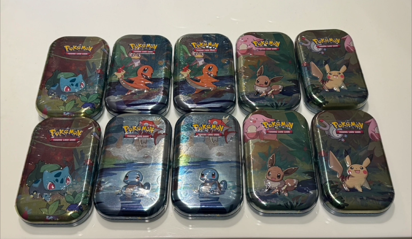 BRAND NEW Pokemon Kanto Friends mini tins Bulbasaur, Charmander, Squirtle, Eevee, and Pikachu Purchased from Pokemon center Pickup in Vancouver