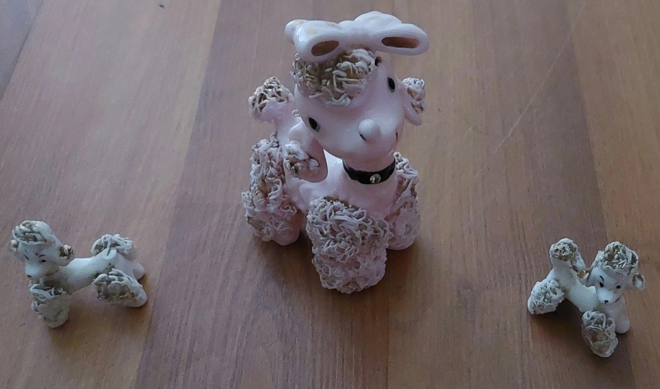Selling a set of three vintage poodle figurines! The set includes one larger pink poodle and two smaller white poodles. They would make a super cute addition to any collection or decor