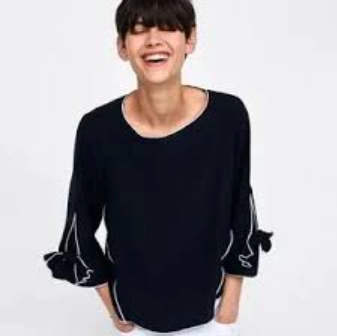 Brand new zara contrasting piping navy bow top Size small-medium Pick up at yorkdale or eaton centre Cash only