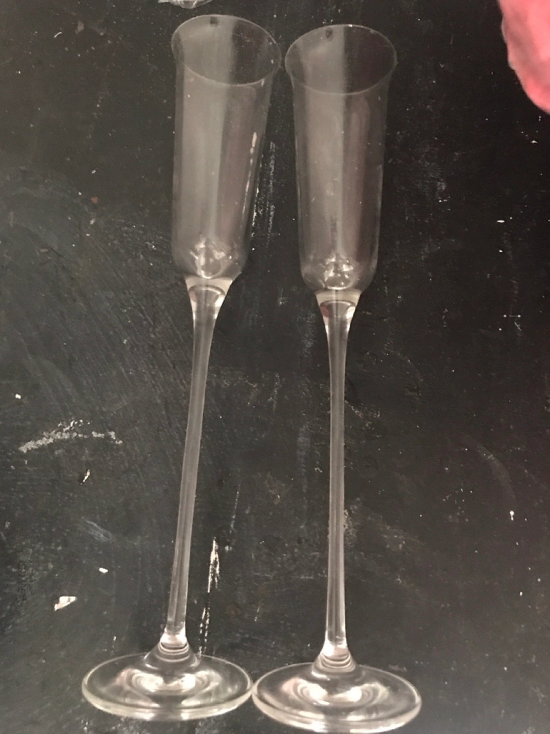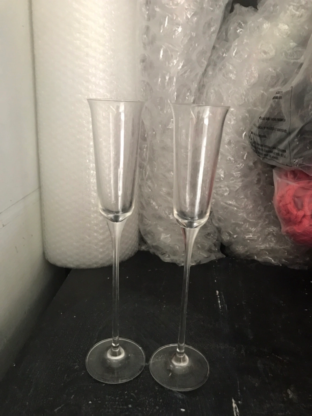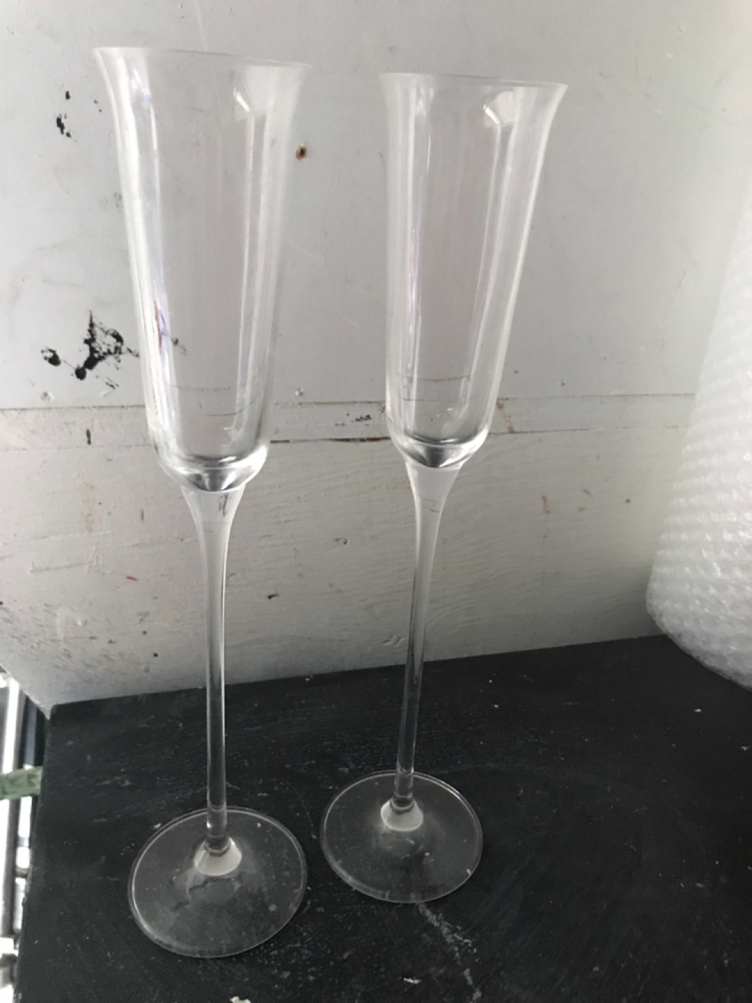 Selling a set of two elegant champagne flutes. They're perfect for celebrations or adding a touch of sophistication to any occasion. These glasses are in great condition and ready for a new home. The flutes are in excellent condition and there are no cracks or chips in the glasses! Pick up location is 10 Alcorn Avenue M4v1e4