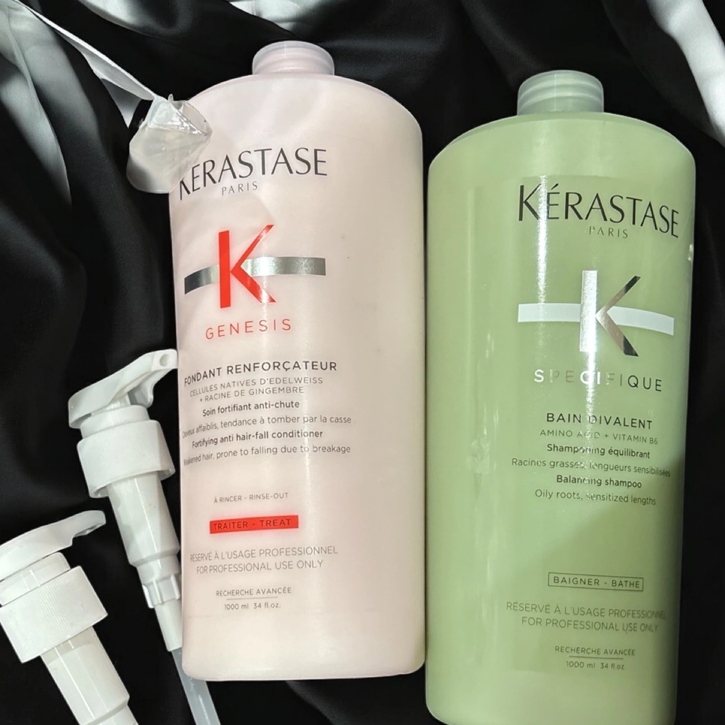 Selling a set of Kérastase shampoo! This includes: - Kérastase Genesis Fondant Renforcateur (1000 ml) - Kérastase Spécifique Bain Divalent (1000 ml) Both are designed for professional use and are great for hair care Price is for each