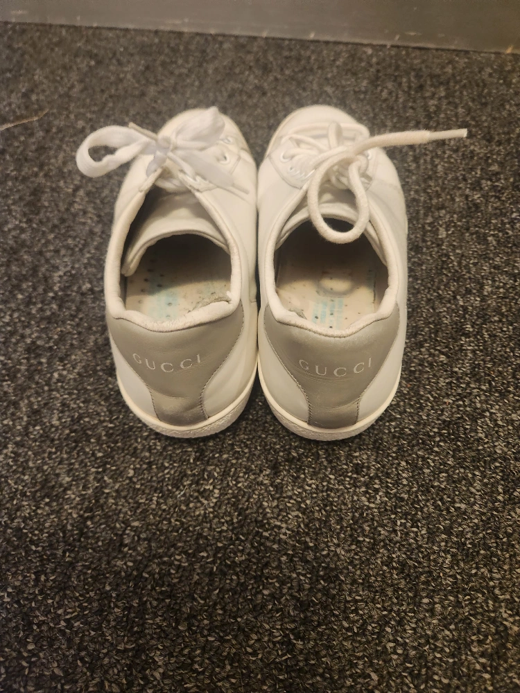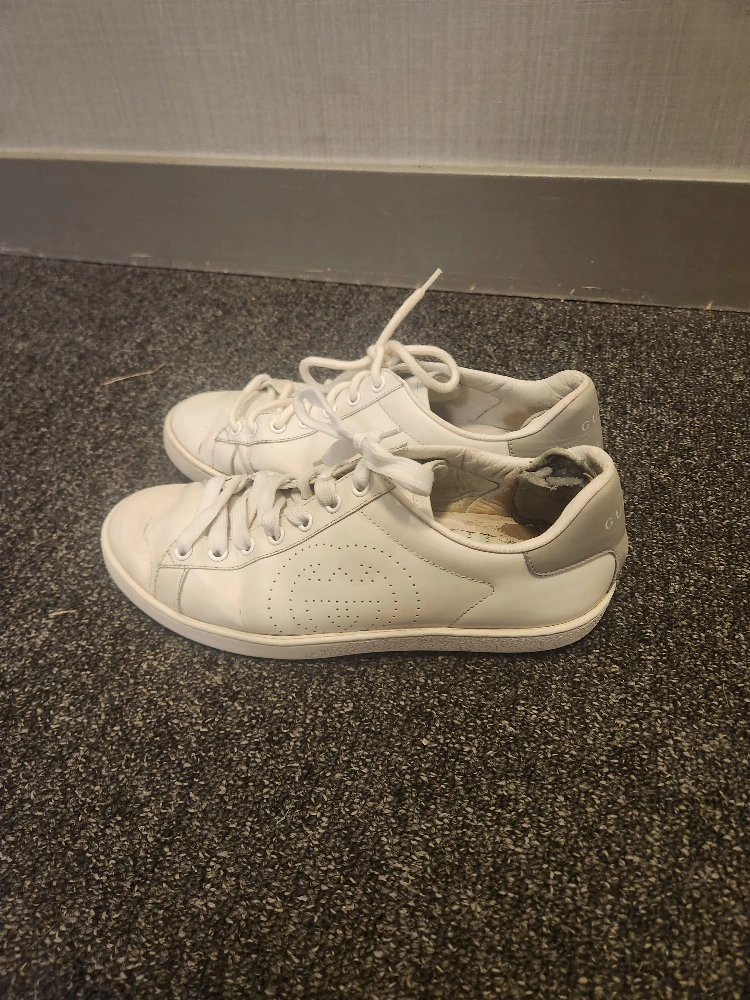 Selling a pair of Gucci white leather sneakers in size 37.5. They show some signs of wear on the inside, as you can see in the photos, but still have lots of life left! * Cash Only * * No E-transfers * * Pickup Only * * Serious Offers Only *