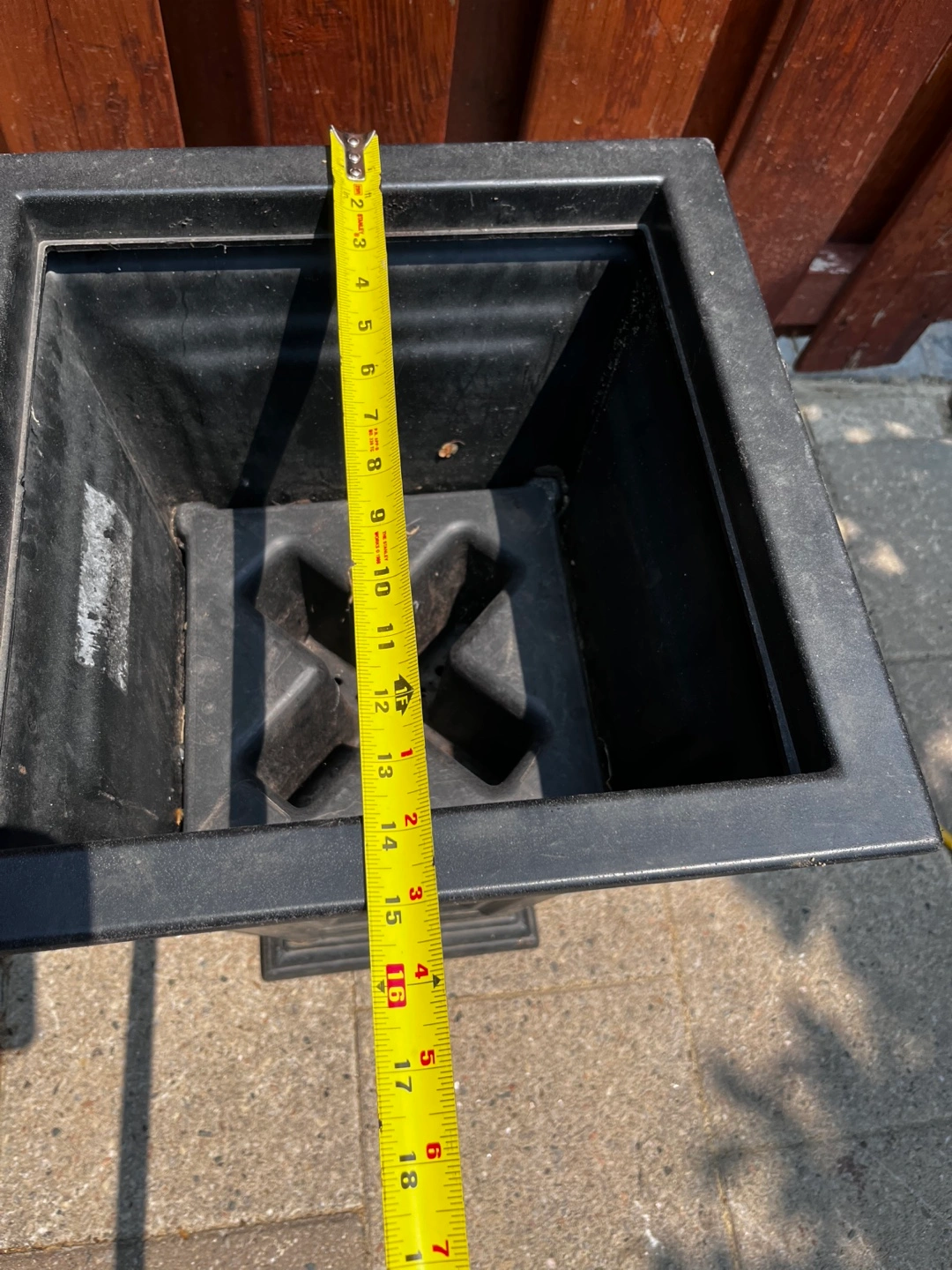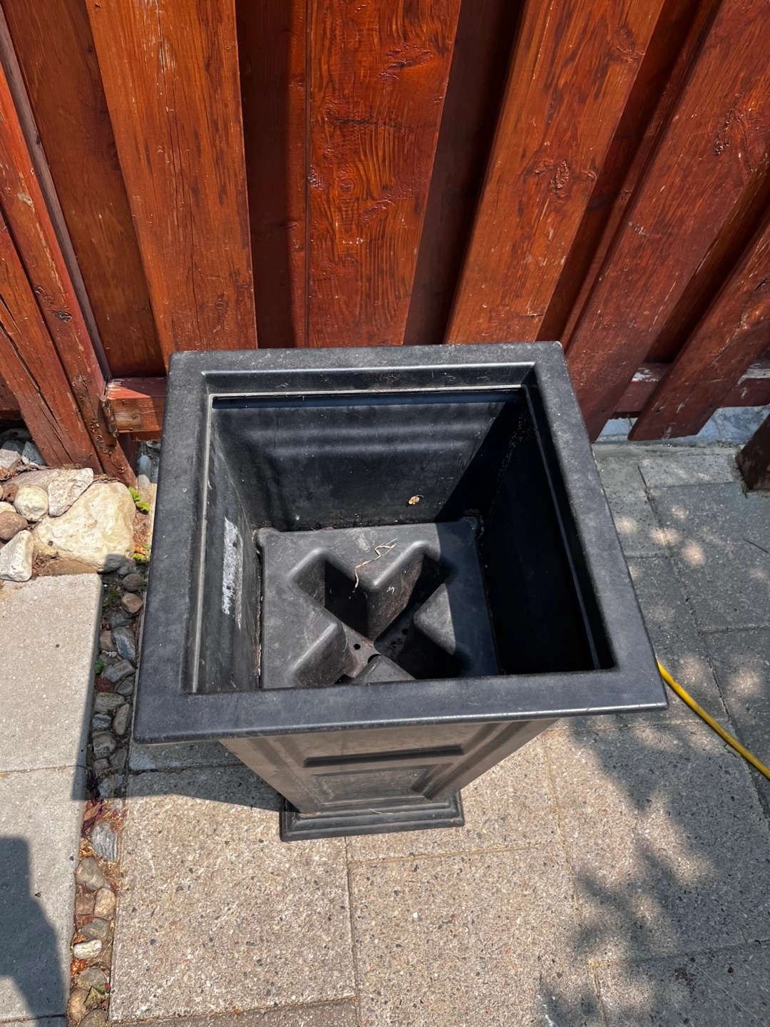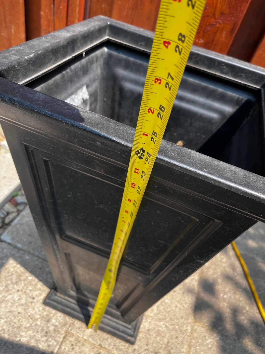 Selling a tall, square planter in black. It's in great shape and ready for your plants! Measures approximately 24”h x 15” W Pick up only. Closest intersection is Jane St and Eglinton Ave