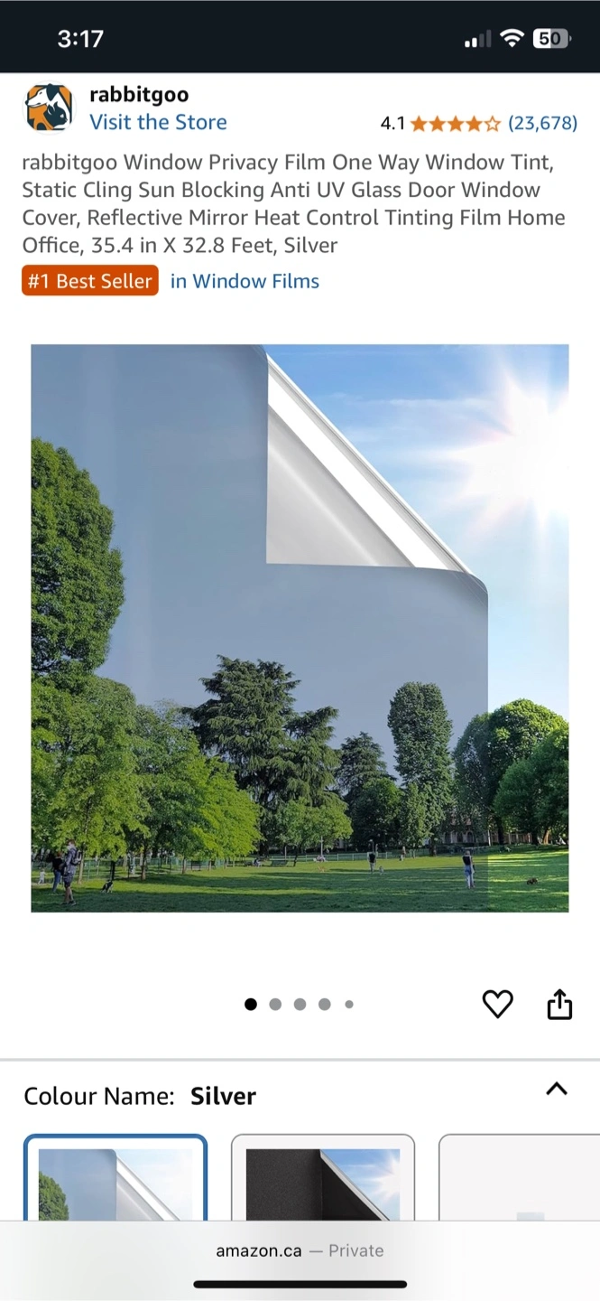 A static cling film that is reflective on one side to reflect sunlight and UV rays which helps keep rooms cool, and also acts as a privacy film during the day time. I bought way too much and no longer need it. Originally paid $149.99+tax for it. Used maybe 1/6 of the roll, and there’s still tons left to use for multiple windows.