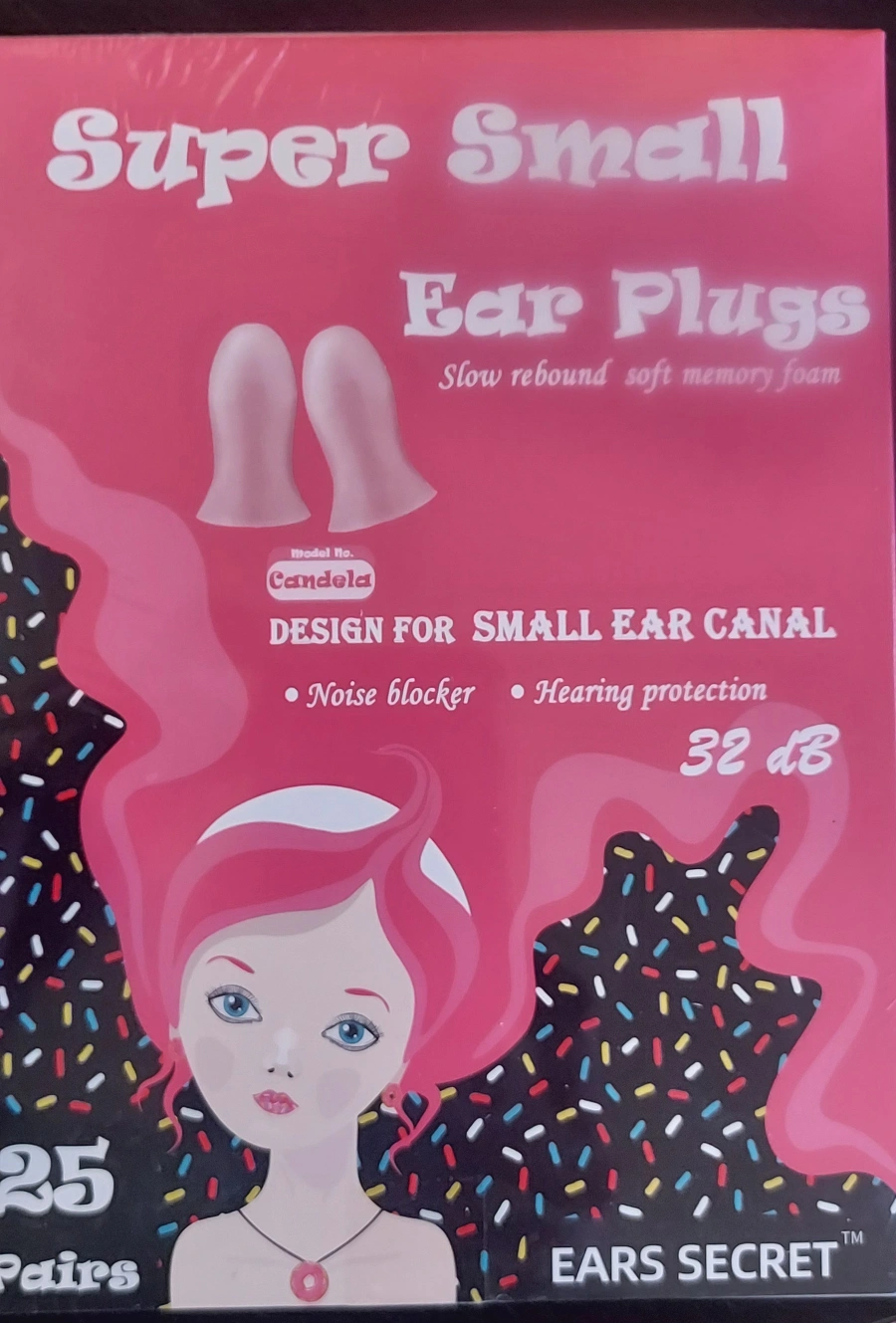 Selling a pack of Super Small ear plugs by Candela. These ear plugs are designed for small ear canals and offer noise blocking and hearing protection. They are made of slow rebound soft memory foam and come with 25 pairs in the pack to help you have a restful sleep. available till July 8th