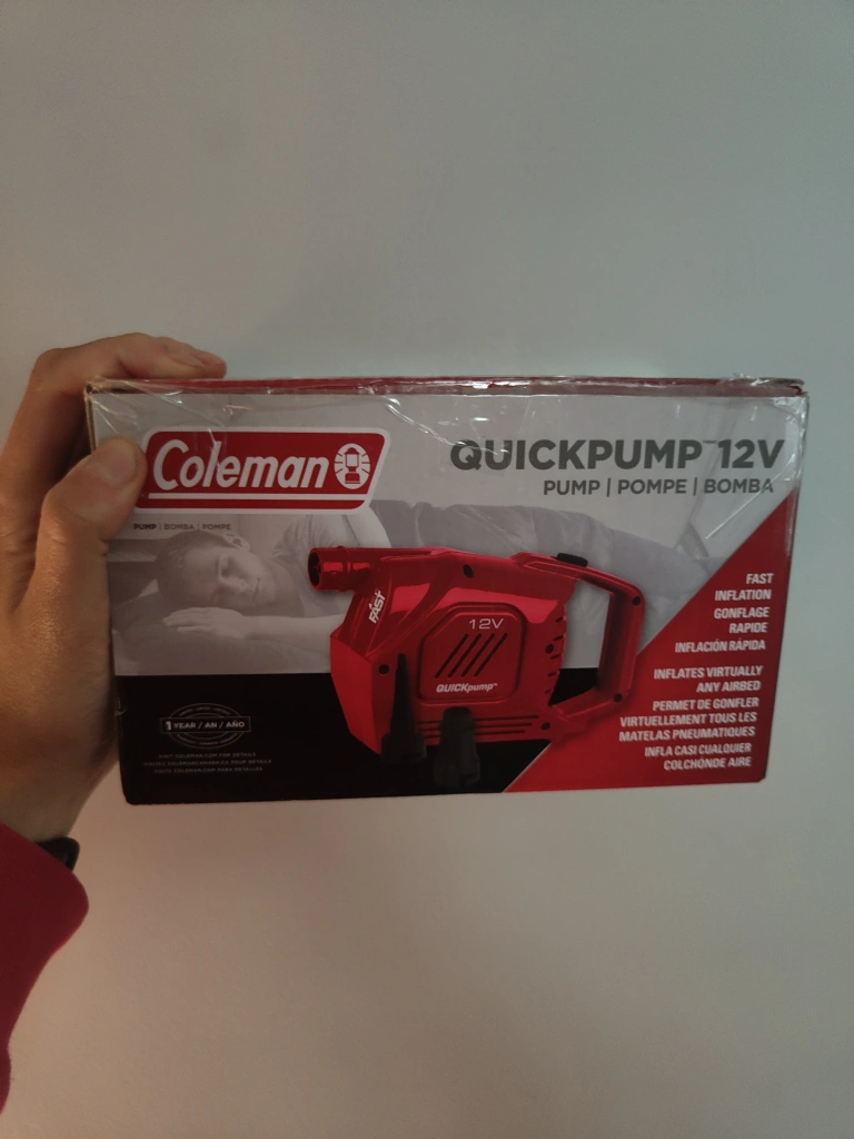 Selling a brand new Coleman QuickPump 12V Comes with the box and all adaptors! It's perfect for camping or having guests over and quickly inflate an airbed. The box has been open but hasn't been used.