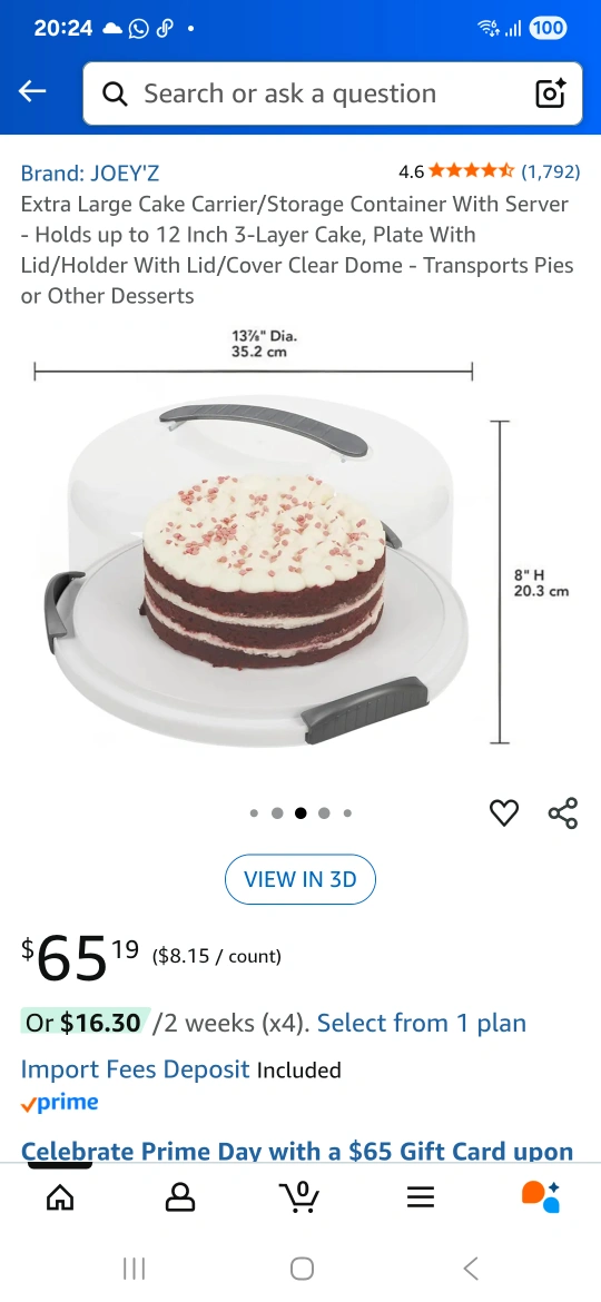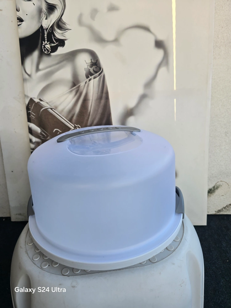 Selling a JOEY'Z extra large cake carrier and storage container. It comes with a server and holds up to a 3-layer cake. The plate has a lid/holder with a clear dome, perfect for transporting pies or other desserts. The diameter is about 13.5 inches (35.2 cm) and it's 8 inches (20.3 cm) tall