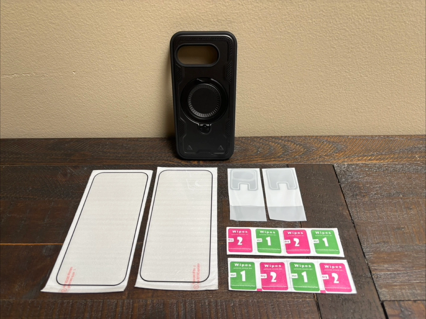 Pixel 9A black phone case that comes with a handy ring stand, mag safe. Also includes screen & camera protectors and cleaning wipes! It is in new condition. Pickup in North York near Don Mills & Finch