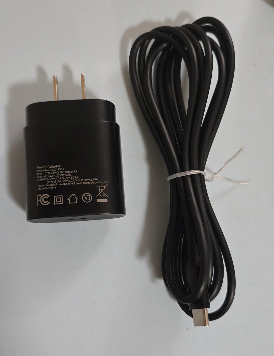 Selling a RLC-2501 power adapter. Details: - Input: 100-240V-50/60Hz 0.7A - Output Power: 25.0W Max - USB-C: 5.0V-3.0A, 9.0V-2.77A - (PPS) 3.3-5.9V-3.0A, 3.3-11.0V-2.25A Comes with a USB-C cable.