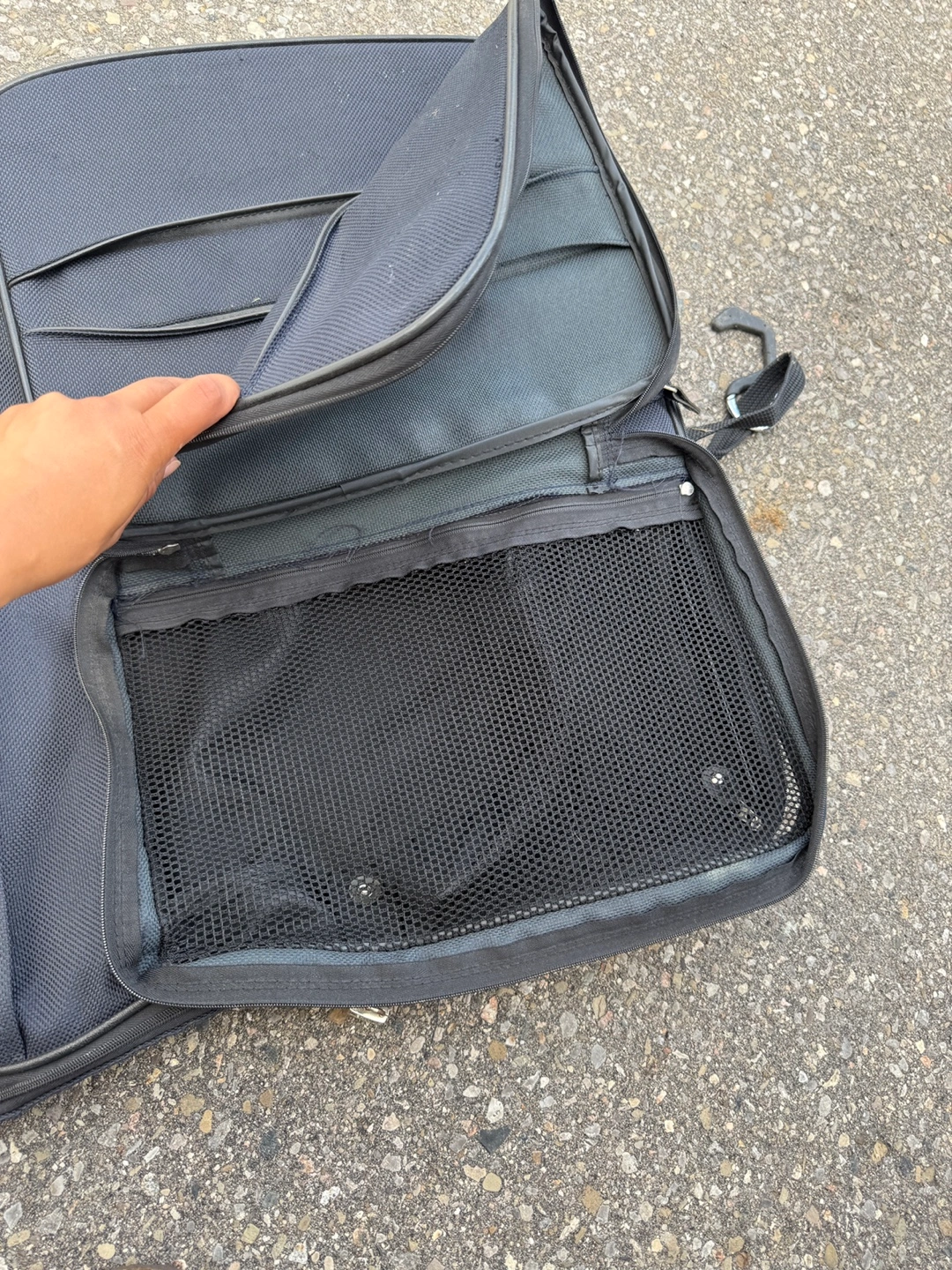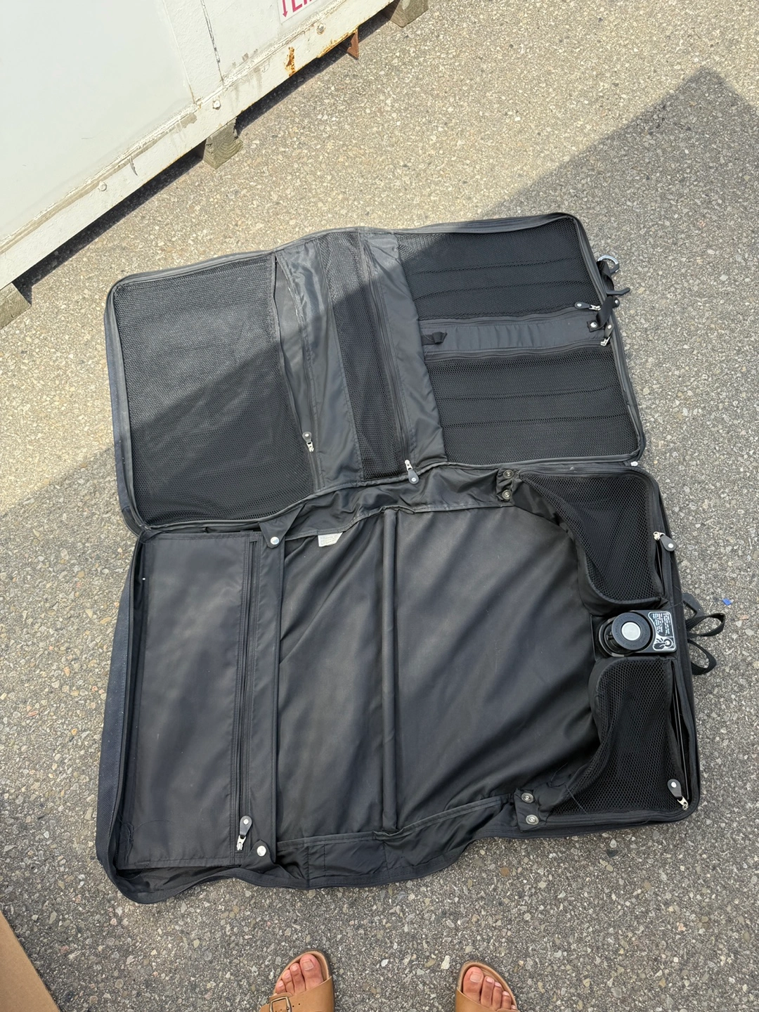 Has some showing of wear and tear but still very usable and perfect for keeping suits safe when traveling
