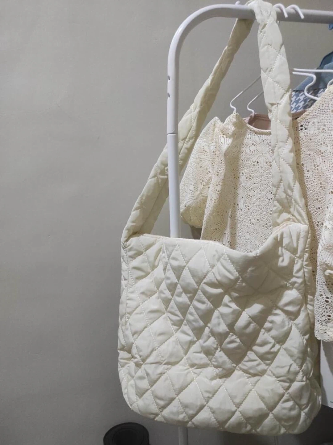 Large capacity crossbody bag in cream. It's in great condition and perfect for everyday use.