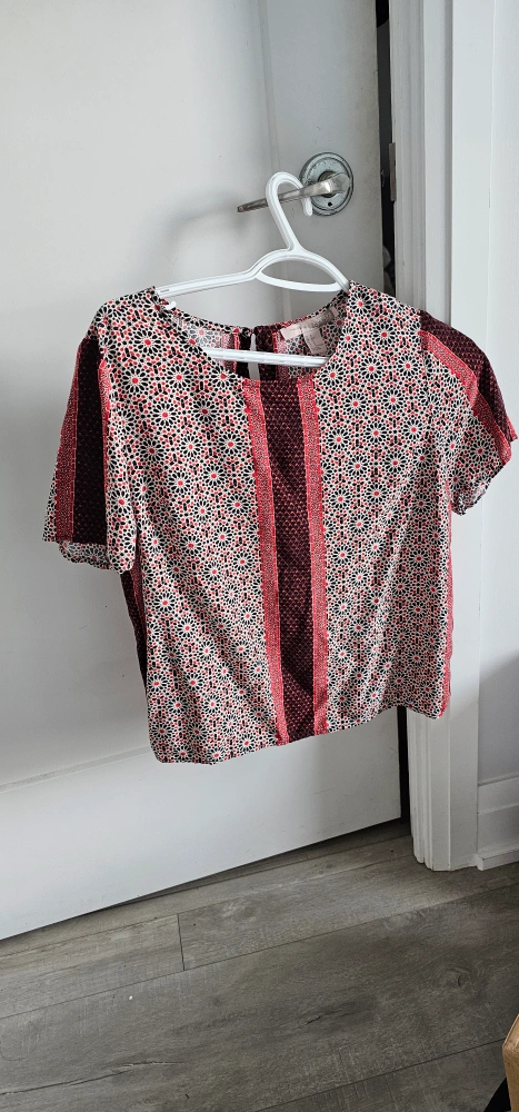 Cute Forever 21 top with a unique pattern and short sleeves. It's a size large and in great condition! Great for summer as it is light