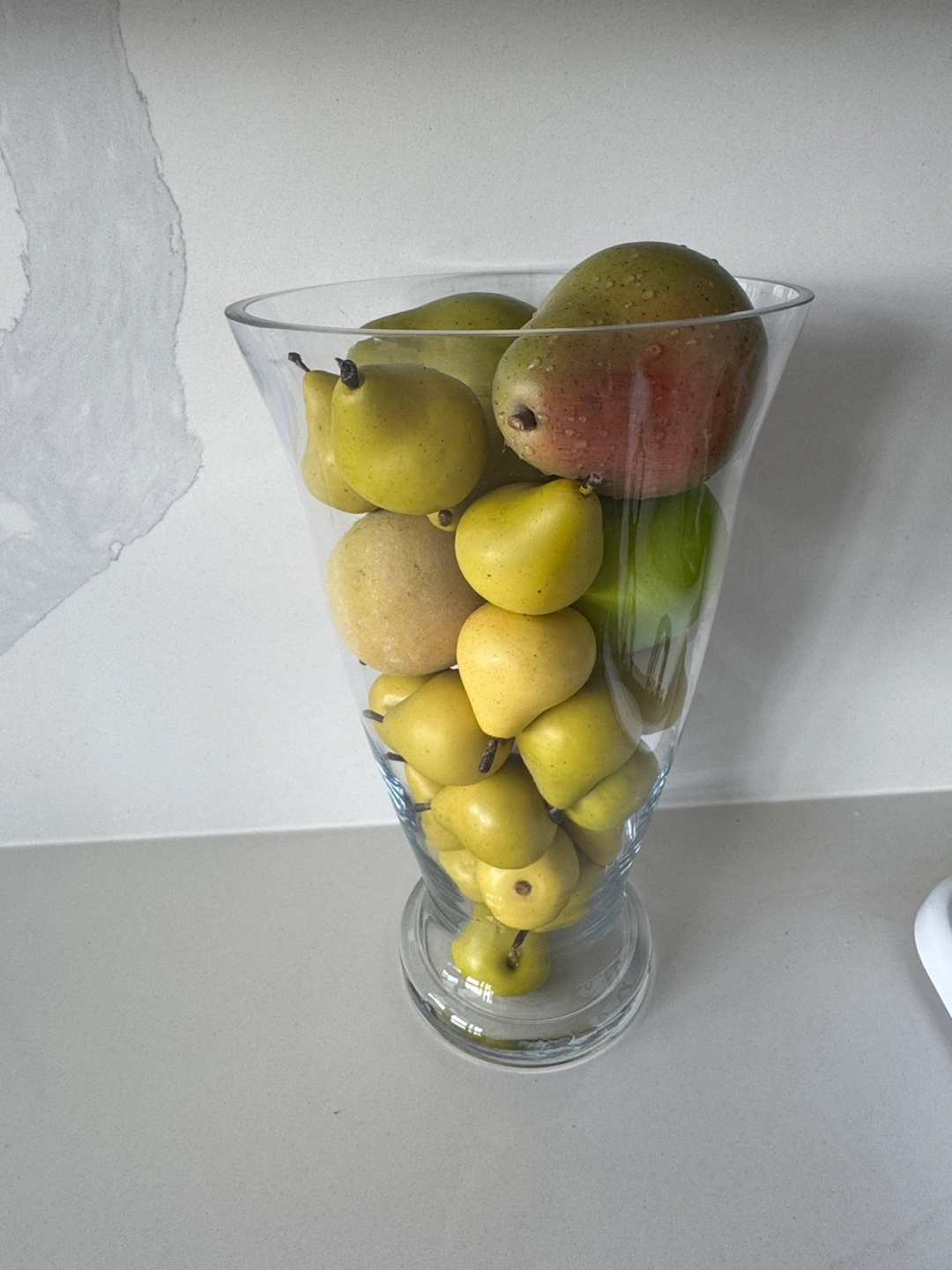 Selling a glass vase filled with artificial pears. It's a nice decorative piece for any room! Pick up location -close to Steeles & Bathurst intersection